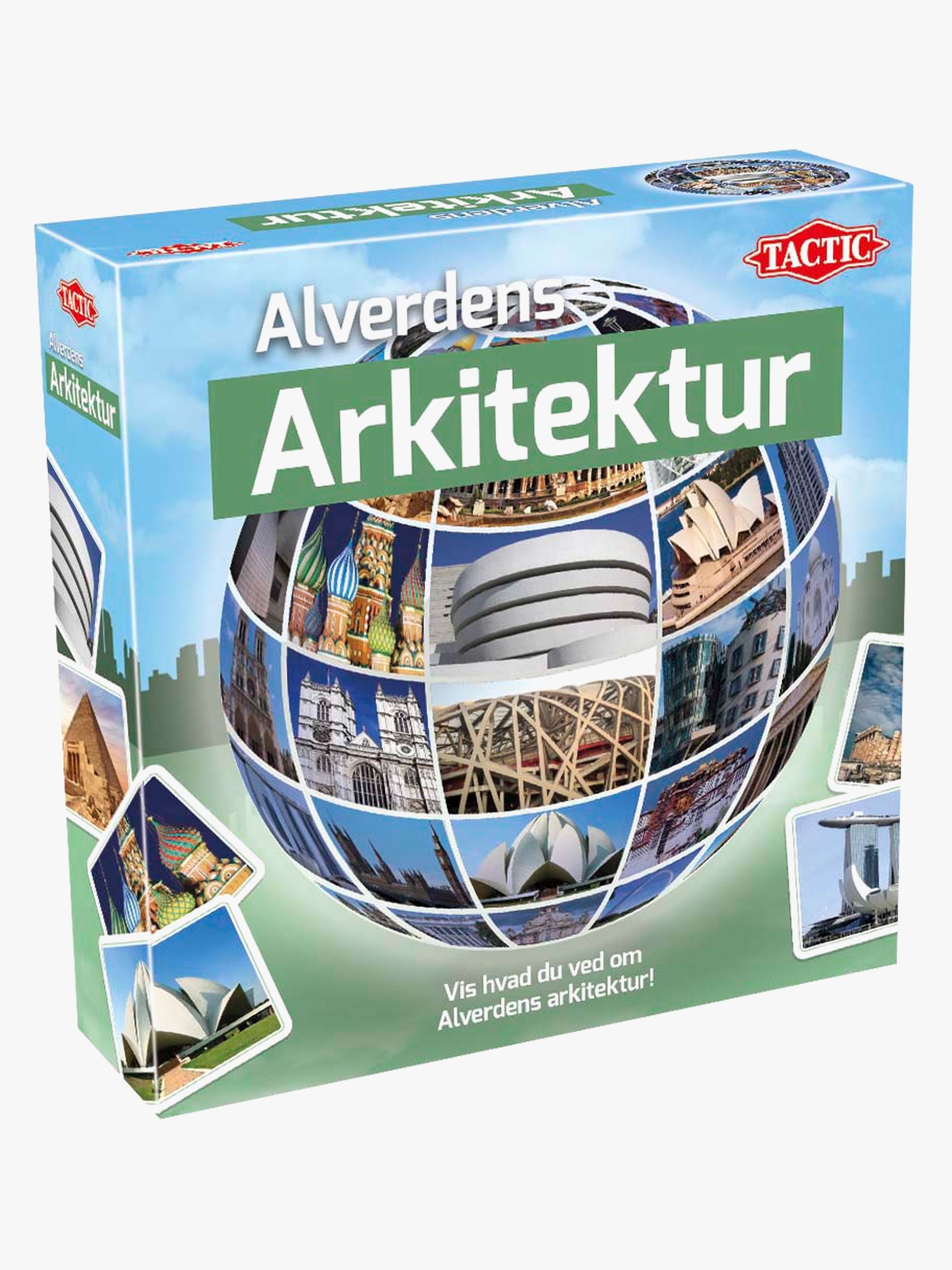 Et spørgsmålsspil fra Tactic om arkitektur. Hvor godt kender du til kendte arkitekter og deres værker? Hvert spørgekort har et billede af en kendt bygning eller arkitekt, et spørgsmål og en lille historie. Et lærerigt og underholdende spil for hele familien. Anbefalet alder: Fra 12 år.