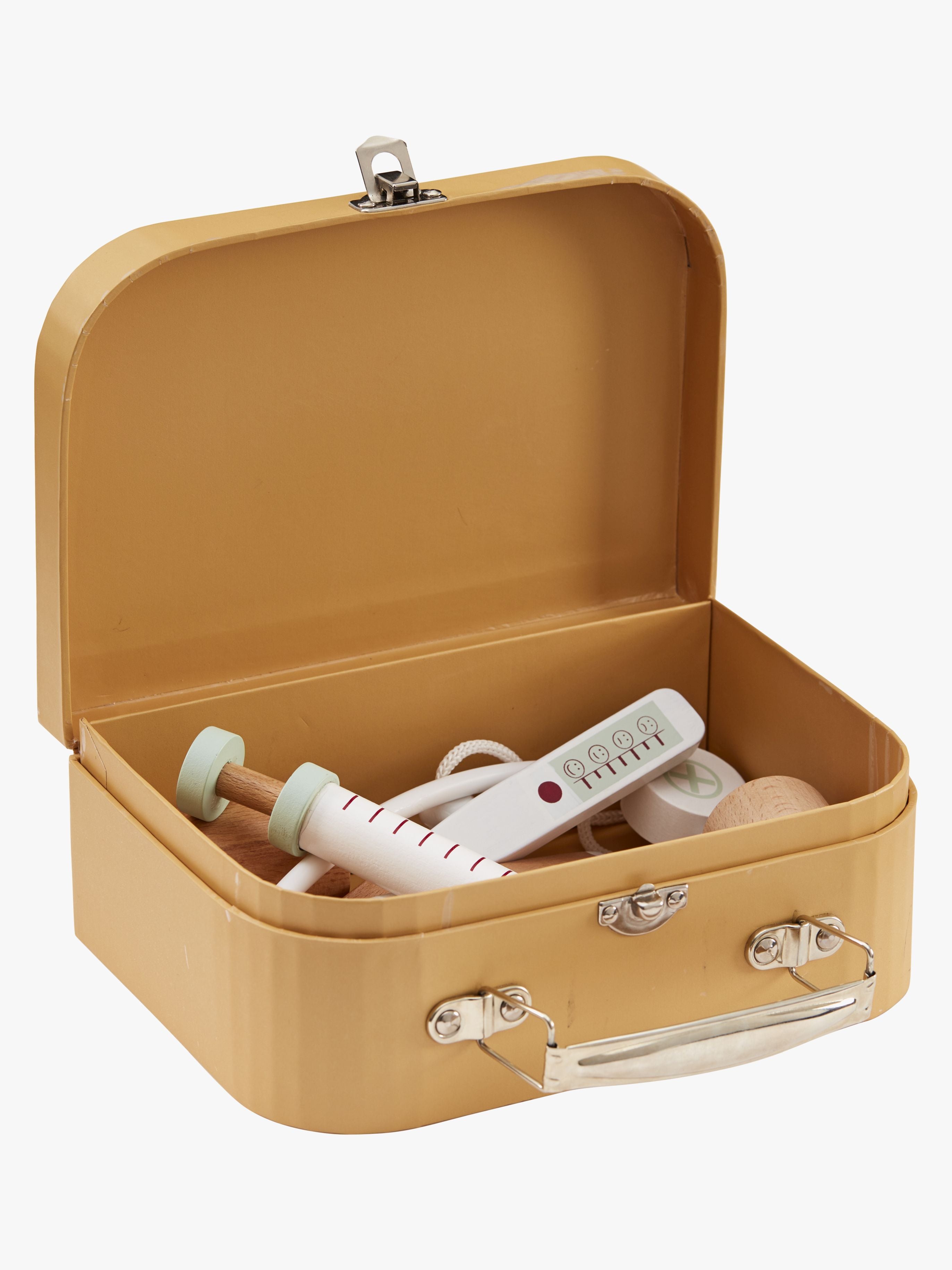 Denne sjove lęgetaske fra Kids Concept indeholder et stetoskop, et termometer, pilleglas, salve, sprųjte, reflekshammer og en trępind. Med dette sęt kan du lege lęge og sikre at dine bamser har det godt. Anbefalet alder: Fra 3 år.