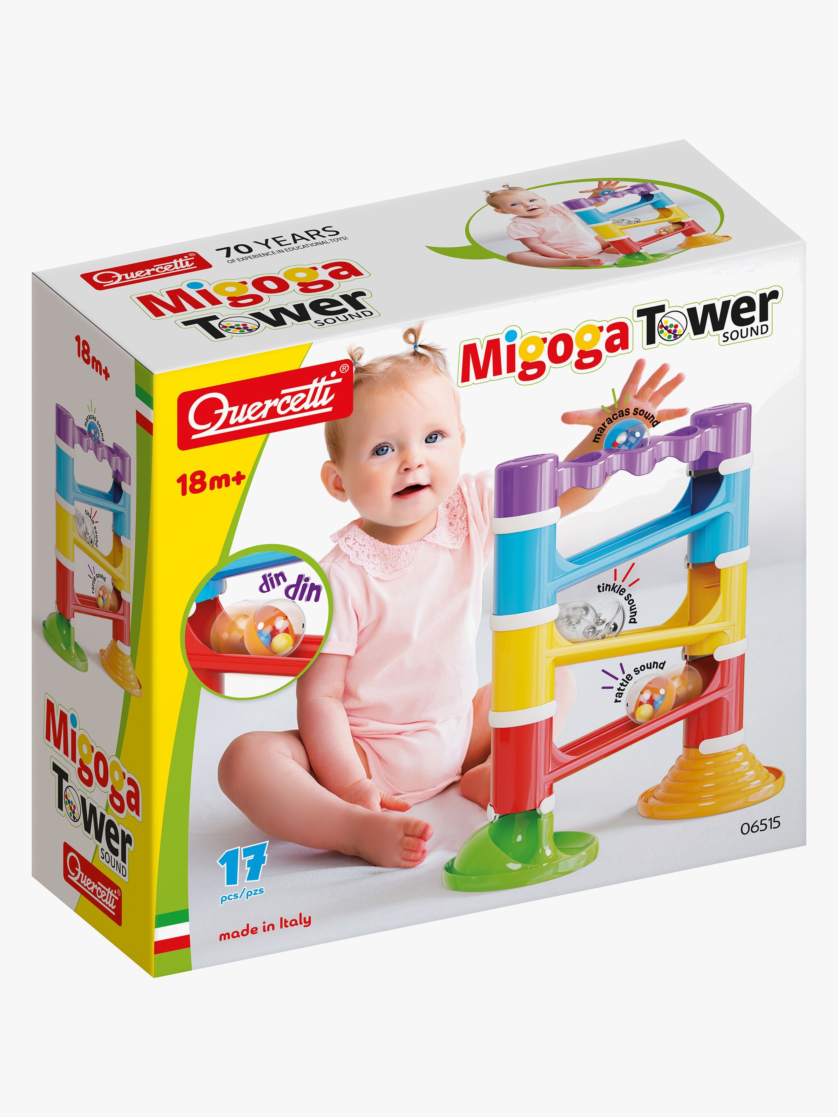 Kuglelabyrint fra Quercetti med et farverigt design. Perfekt til træning af dit barns finmotorik. - Indeholder: 14 dele, 3 kugler. - Farverigt design. - Tre store lydkugler, der skaber spændende effekter, når de ruller! - Træn motorik og koordination på en sjov måde. - Let for små hænder at gribe om. - CE-mærket. - Anbefalet alder: Fra 1,5 år. - Plastik.
