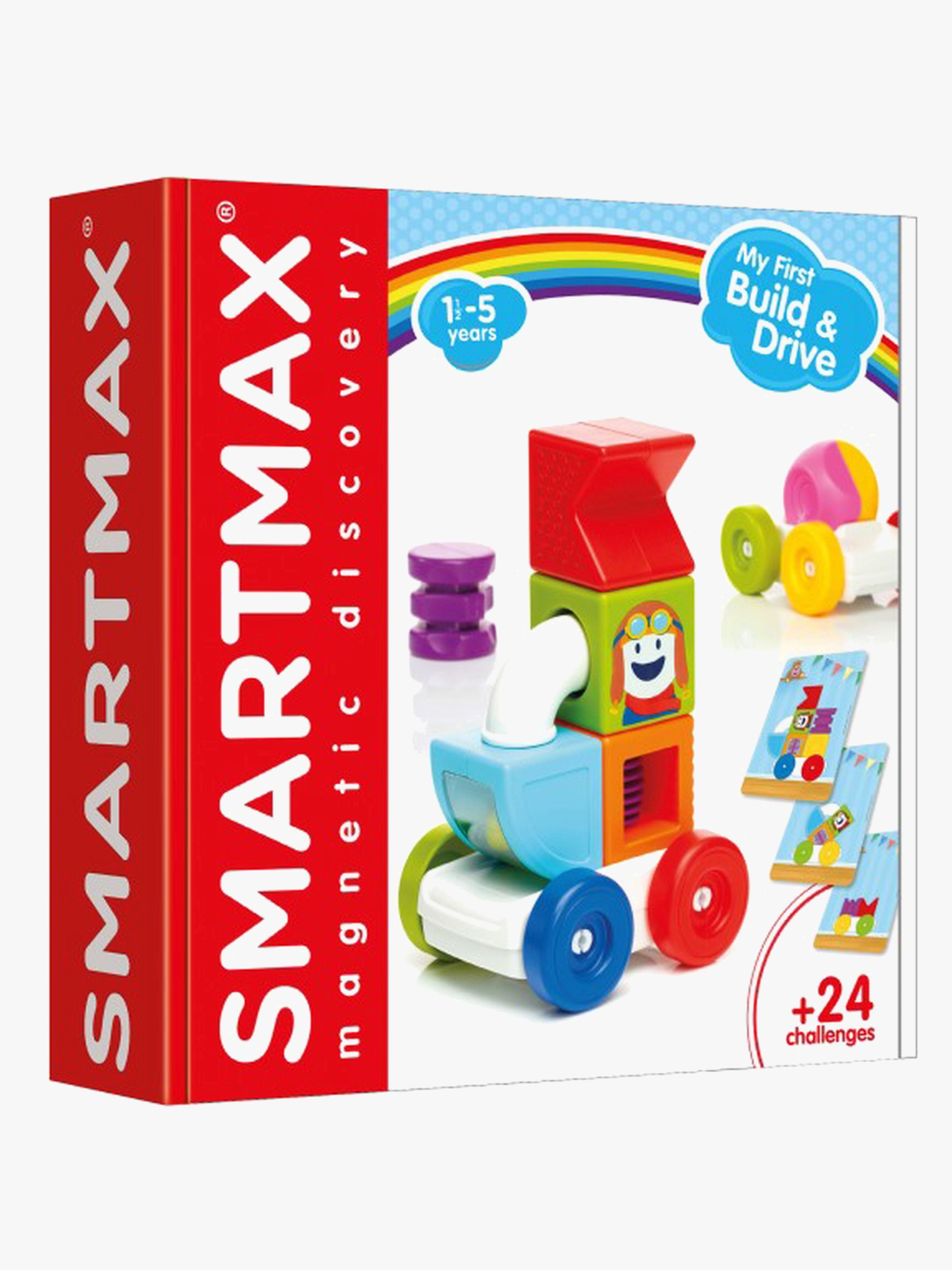 Byg & Kør fra SmartMax med 24 udfordringer, der kan bygges. Perfekt til mange timers sjov. - 2-i-1. - Byg og leg eller prøv at bygge en af de 24 udfordringer. - Lær alt om magnetisme. - 7 dele. - CE-mærket. - Anbefalet alder: Fra 12 måneder.
