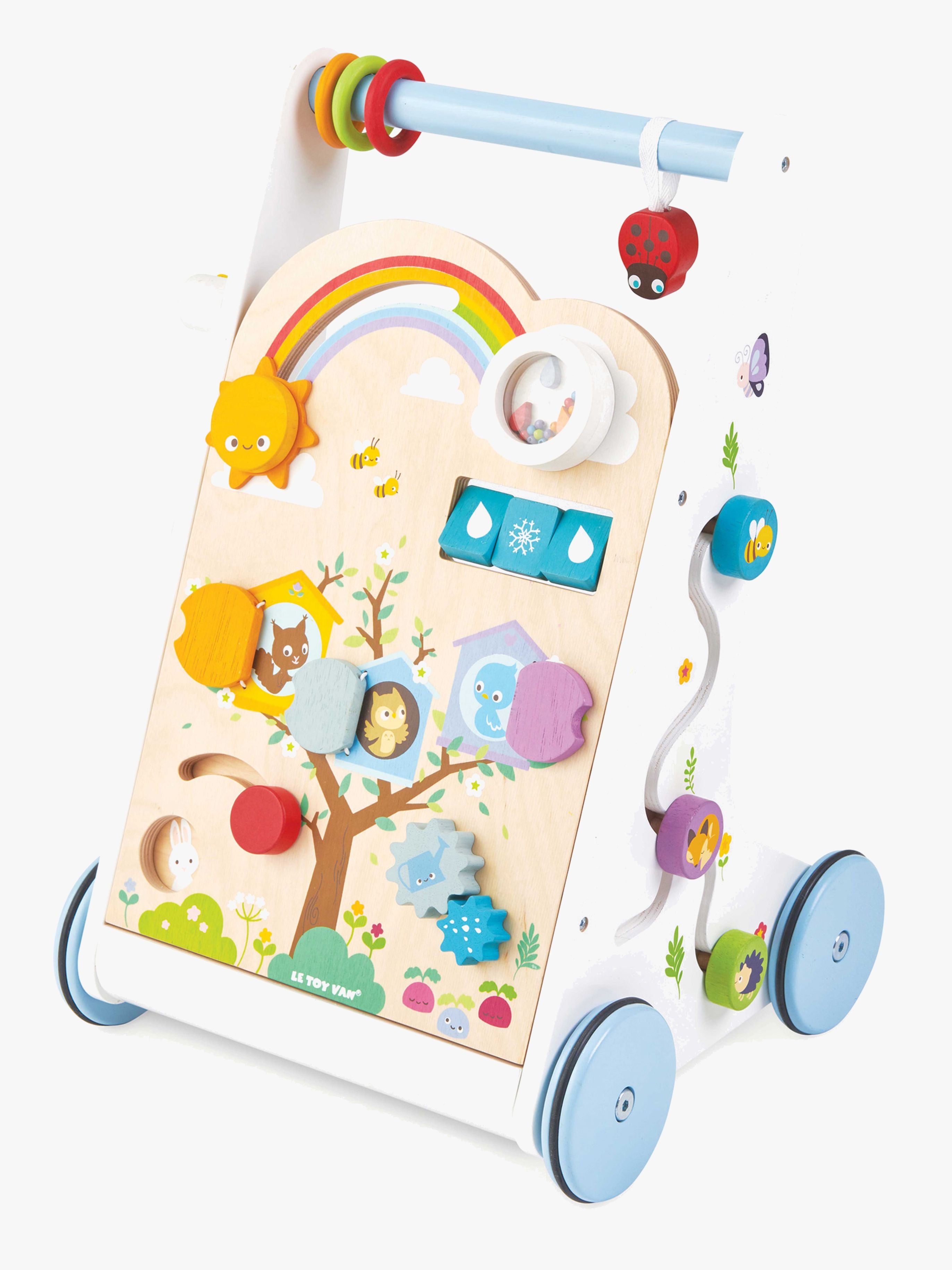 Gåvogn fra Le Toy Van med et inspirerende naturtema. Den har ti sjove aktiviteter, som dit barn kan udforske. Perfekt til børn, der lige har lært at gå. - 10 forskellige legeaktiviteter. - Tandhjul, snurrende perler, labyrint, kuglebane, sanseringe og meget mere. - Stabilt styr. - Sødt og sjovt design. - Fine farver. - Opmuntrer til træning af fin- og grovmotorik, hånd-øje-koordination og sensorisk udvikling. - CE-mærket. - Anbefalet alder: Fra 12 måneder. - Krydsfiner, gummitræ, MDF, gummi, rustfrit stål.