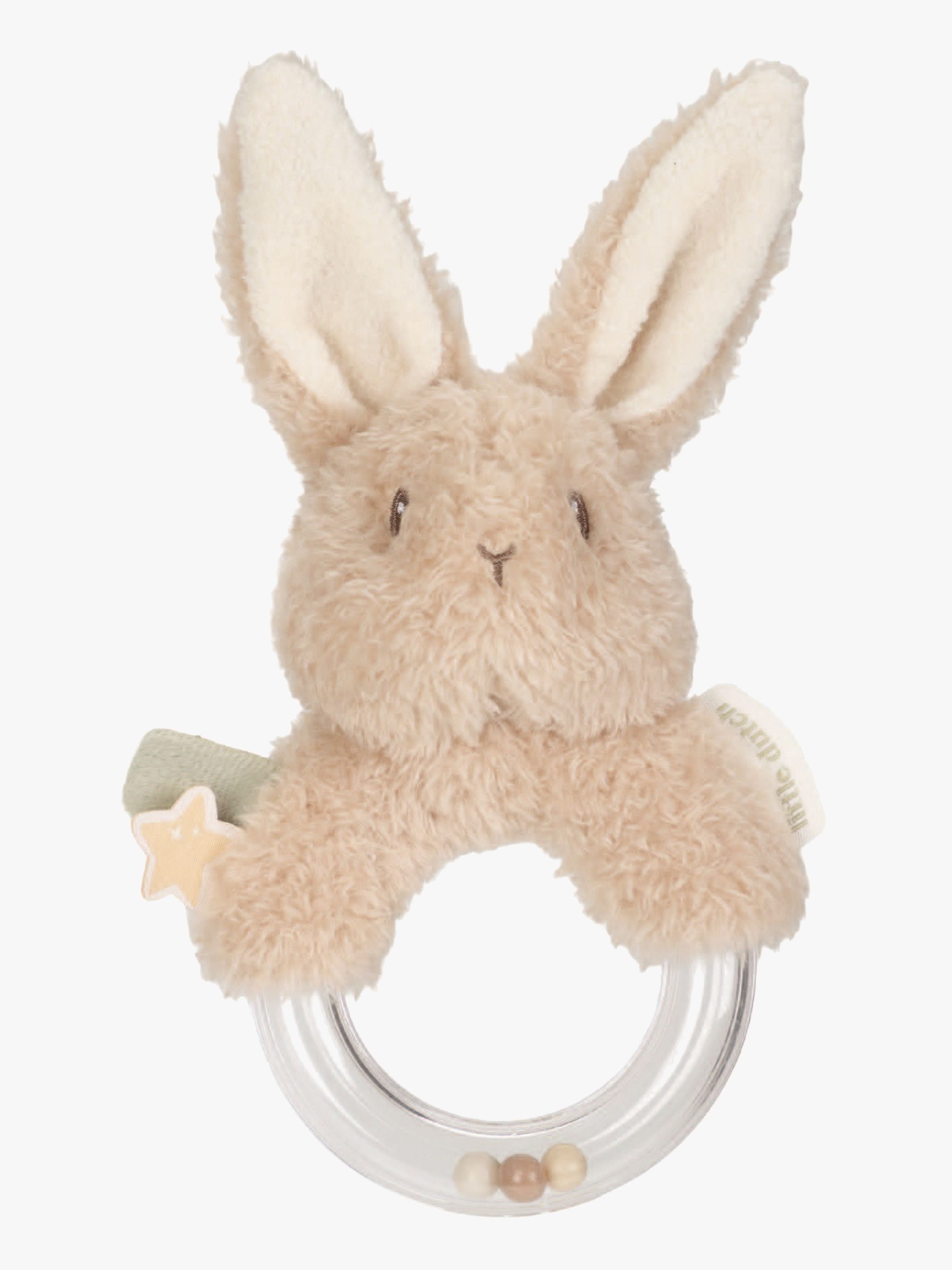 Fin rangle fra Little Dutch. Perfekt til opmuntring af de sensoriske og finmotoriske færdigheder. - Blød og dejlig kvalitet. - Raslelyde, der stimulerer barnets høresans. - Stimulerende legetøj og tøjdyr i ét. - Let for små hænder at gribe om. - Genial til træning af hånd-øje-koordination og finmotorik.
