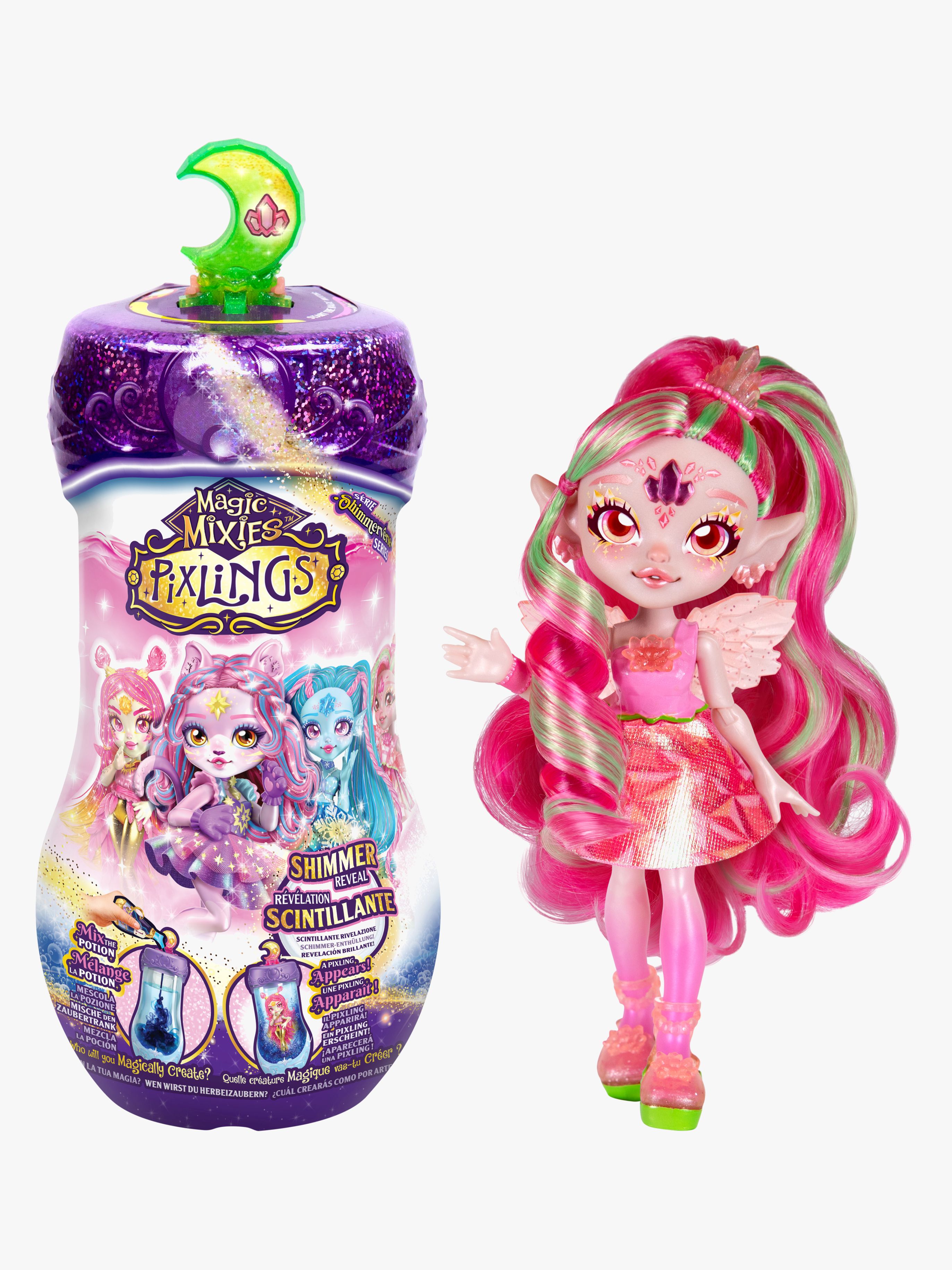 Magisk legesæt fra Magic Mixies med en medfølgende figur og andet tilbehør. Perfekt til timevis af fantasifuld leg. - Indeholder: 1 dukke, 1 magisk beholder, 1 ingredienssæt, 1 outfit. - Tilsæt de magiske ingredienser, sig de magiske ord og se din Pixling-dukke på magisk vis komme frem i flasken. - Dukken er ca. 16 cm høj. - Bevægelig krop. - Saml på alle produkterne i serien. - CE-mærket. - Anbefalet alder: Fra 5 år. - Plastik.