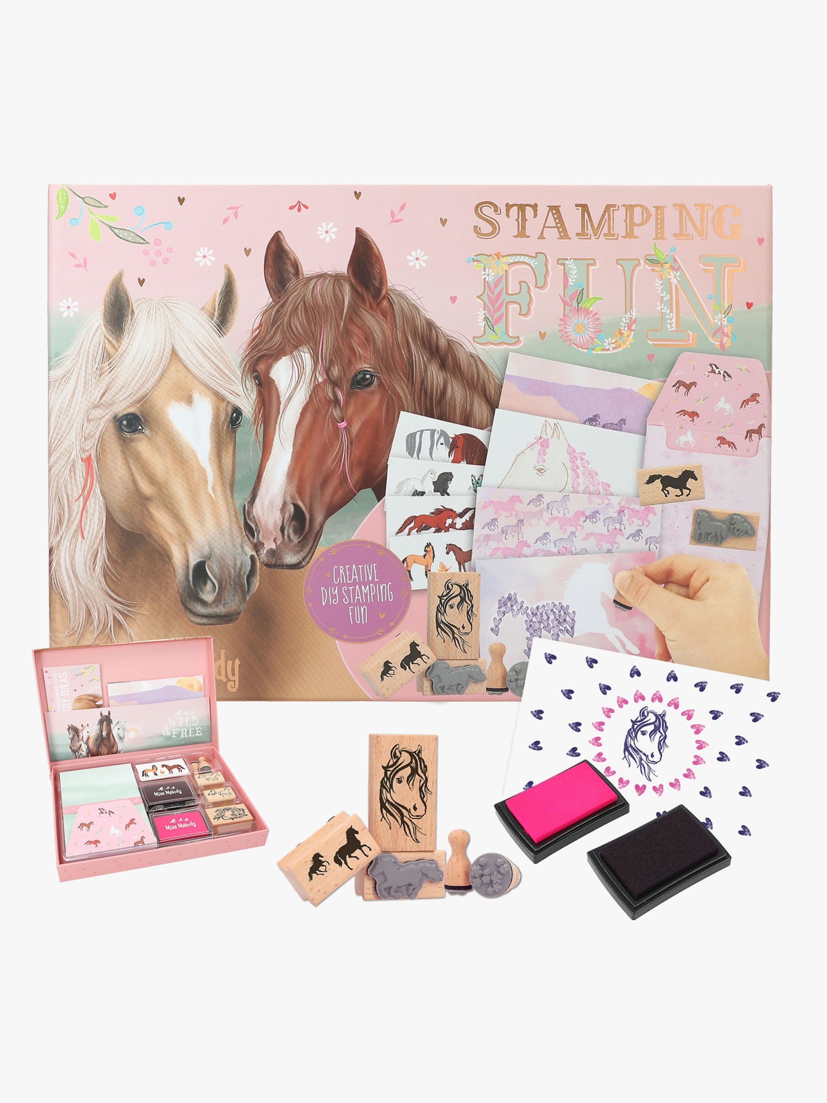 Brev- og stempelsæt fra Miss Melody med meget tilbehør. Perfekt til at sende de bedste breve til dine venner. - 5 stempler. - 2 blækpuder (pink og lilla). - 4 ark med klistermærker. - 12 ensfarvede kort. - 12 illustrerede kort. - 12 matchende kuverter. - CE-mærket. - Anbefalet alder: Fra 5 år. - Plastik, papir, metal, gummi.
