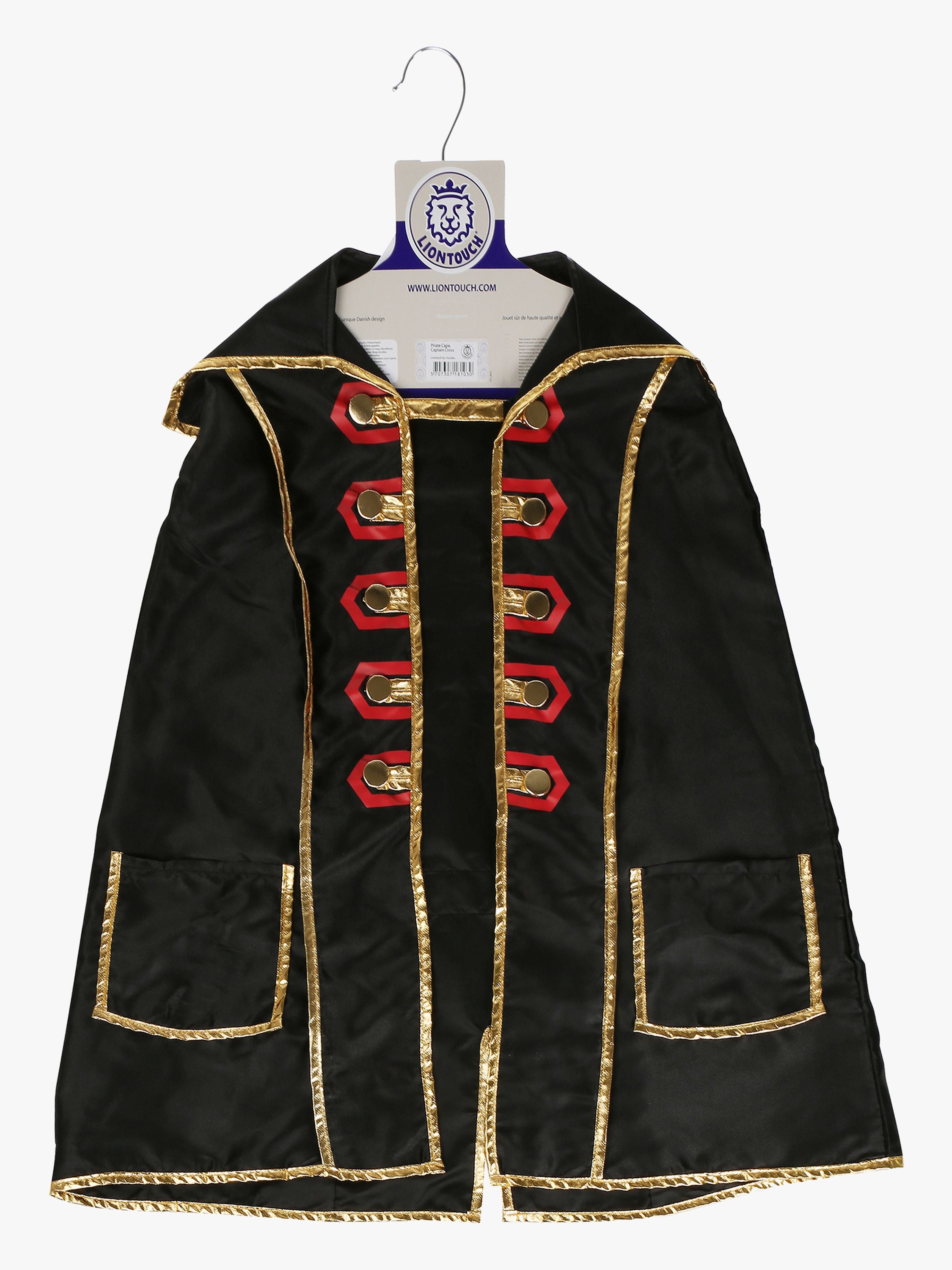 Piratkappe fra Liontouch - en sej sørøverkappe, som passer perfekt til den lille sørøver! Kappen er lavet af blankt materiale med kraftig krave, fine gulddetaljer og velcrobåndslukning ved halsen. Klæd dig ud som en ægte pirat og tag ud på spændende eventyr. Anbefalet alder: Fra 3-7 år. Mål: 77 cm.