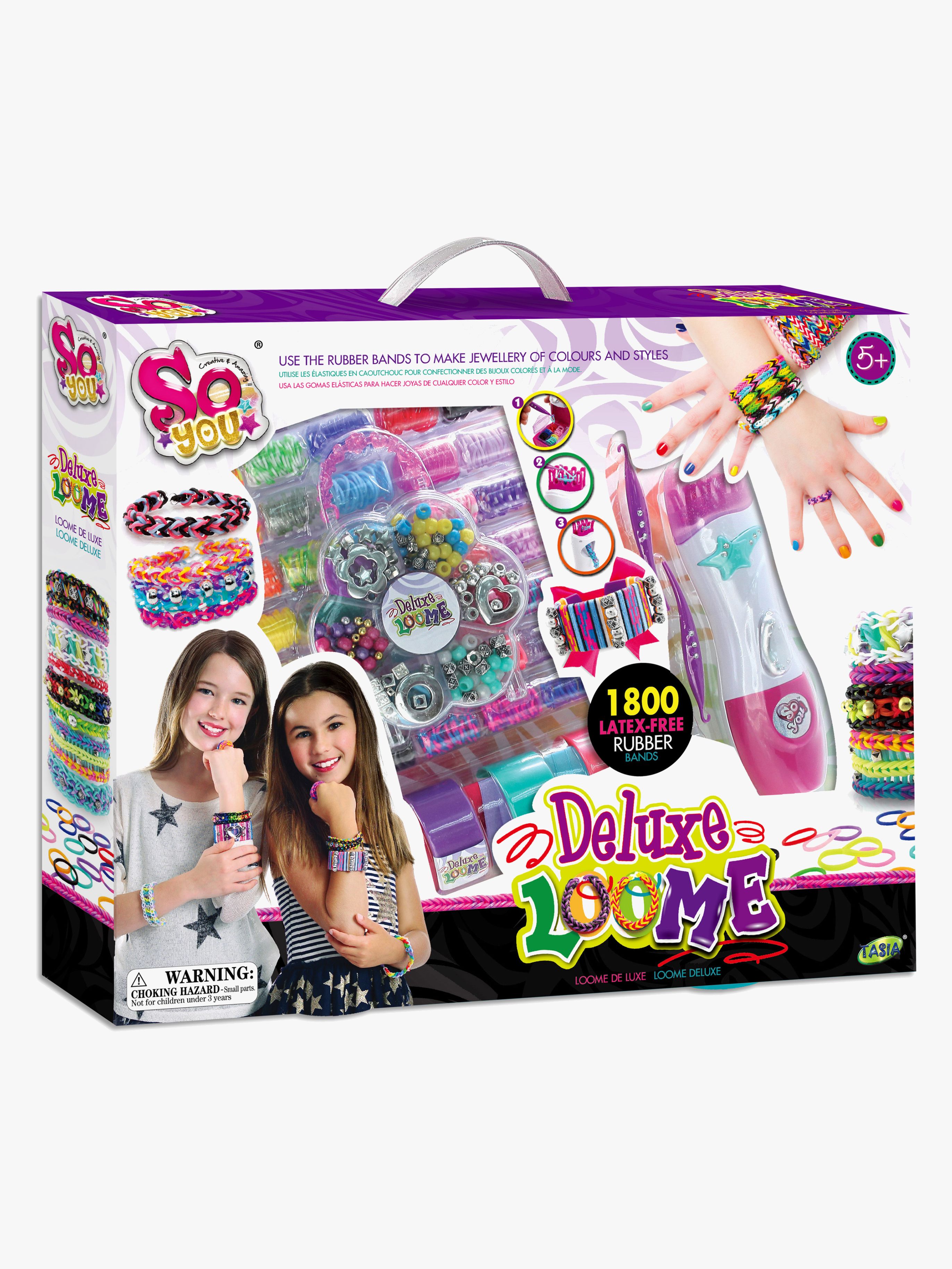 Sjovt kreasæt fra So Beads til at skabe unikke smykker. Det har loombånd og perler i flotte farver. Perfekt til kreative aktiviteter. - 1800 dele. - Lav forskellige smykker med perler og vævebånd. - Der medfølger en hæklemaskine. - Leveres med alt det tilbehør, du skal bruge for at komme i gang med det samme. - Stimulerer dit barns kreativitet. - Flere flotte farver at blande og matche. - Genial til træning af hånd-øje-koordination og finmotorik. - CE-mærket. - Anbefalet alder: Fra 5 år. - Plastik, gummi.