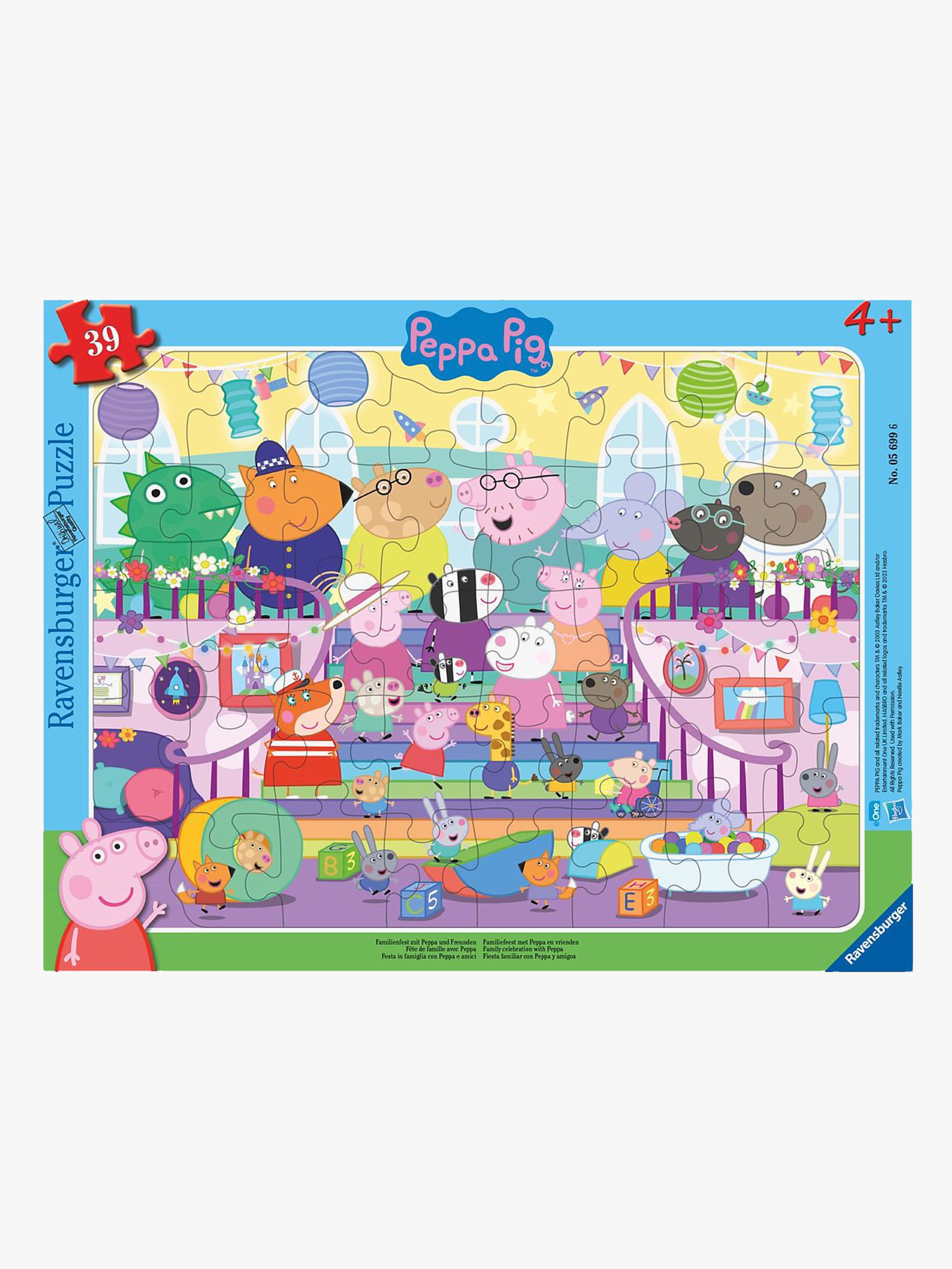 Rammepuslespil fra Ravensburger med et indbydende Gurli Gris-motiv. Det har 39 brikker. Perfekt til træning af dit barns koordination og finmotorik. 39 brikker. CE-mærket. Anbefalet alder: Fra 4 år. Karton.
