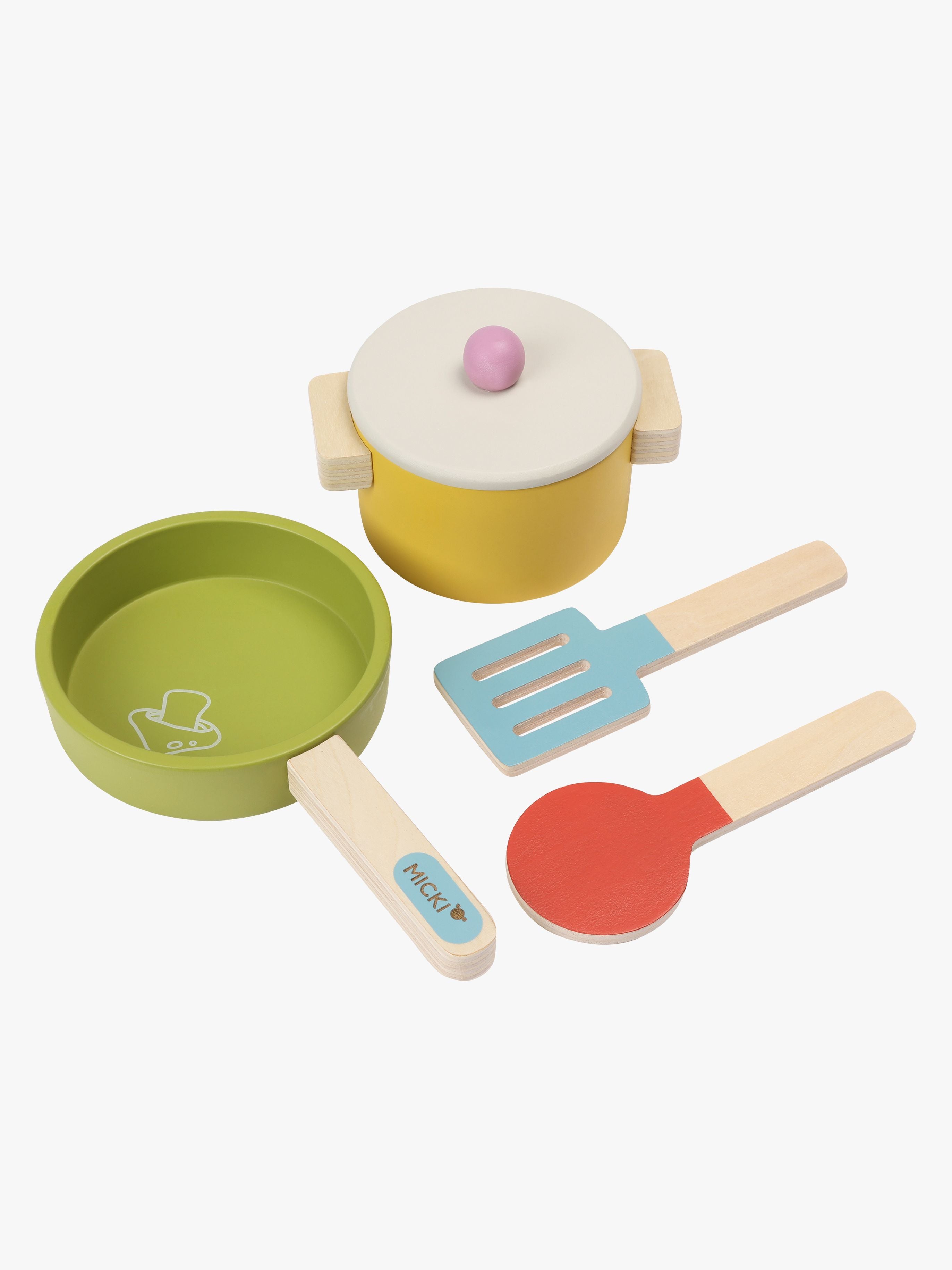 Fint køkkensæt fra Micki. Perfekt til timevis af fantasifuld leg. - Indeholder: 1 gryde, 1 stegepande, 1 ske, 1 paletkniv. - Klassisk design. - Sjove motiver. - CE-mærket. - Anbefalet alder: Fra 3 år.