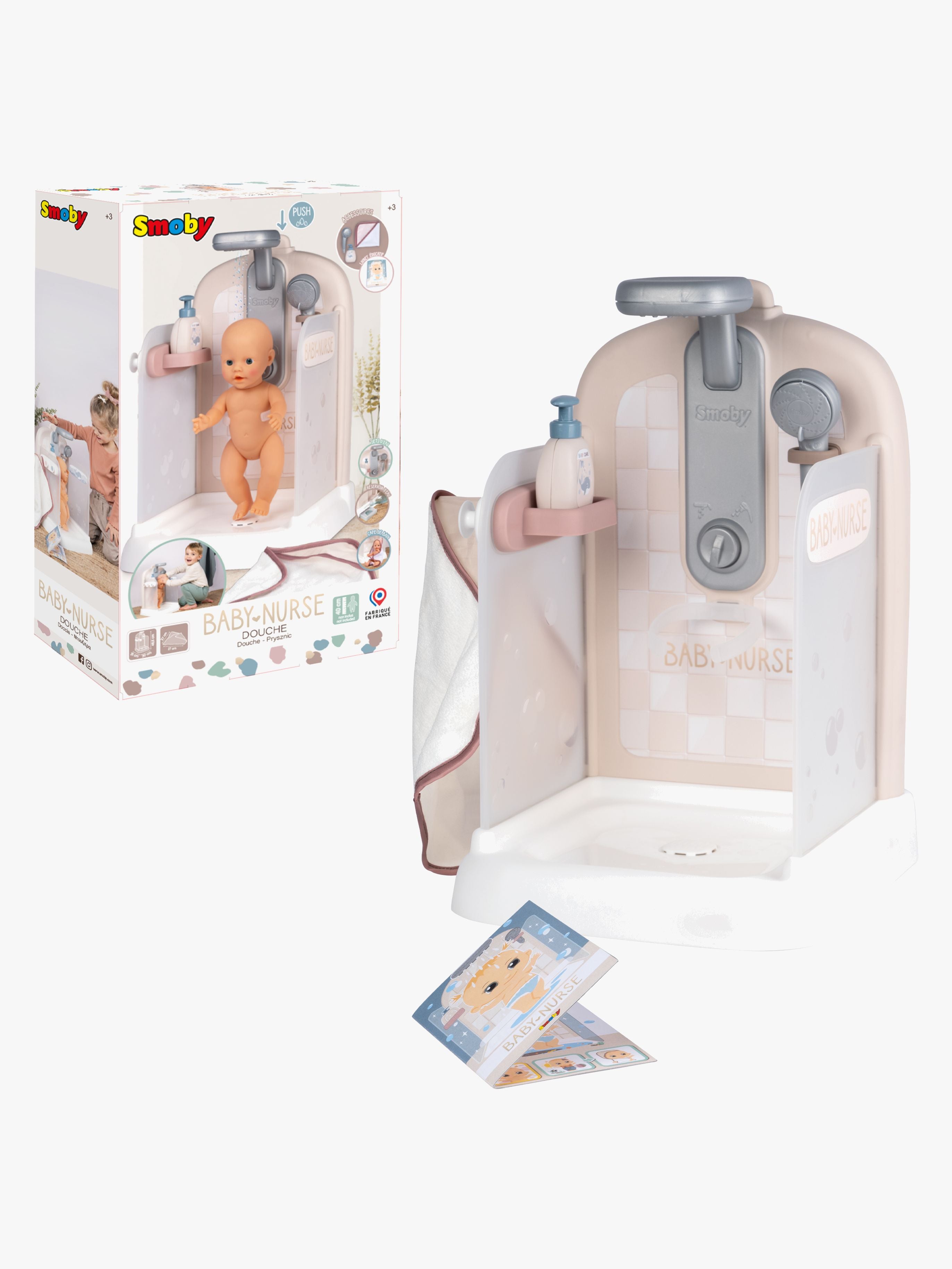 Bruser fra Smoby til dukkerne med et fungerende brusehoved. Den har en håndklædeholder og en masse spændende tilbehør. - Flere forskellige tilbehør medfølger. - Perfekt til legetid. - Dukke medfølger ikke. - CE-mærket. - Anbefalet alder: Fra 3 år. - Plastik.