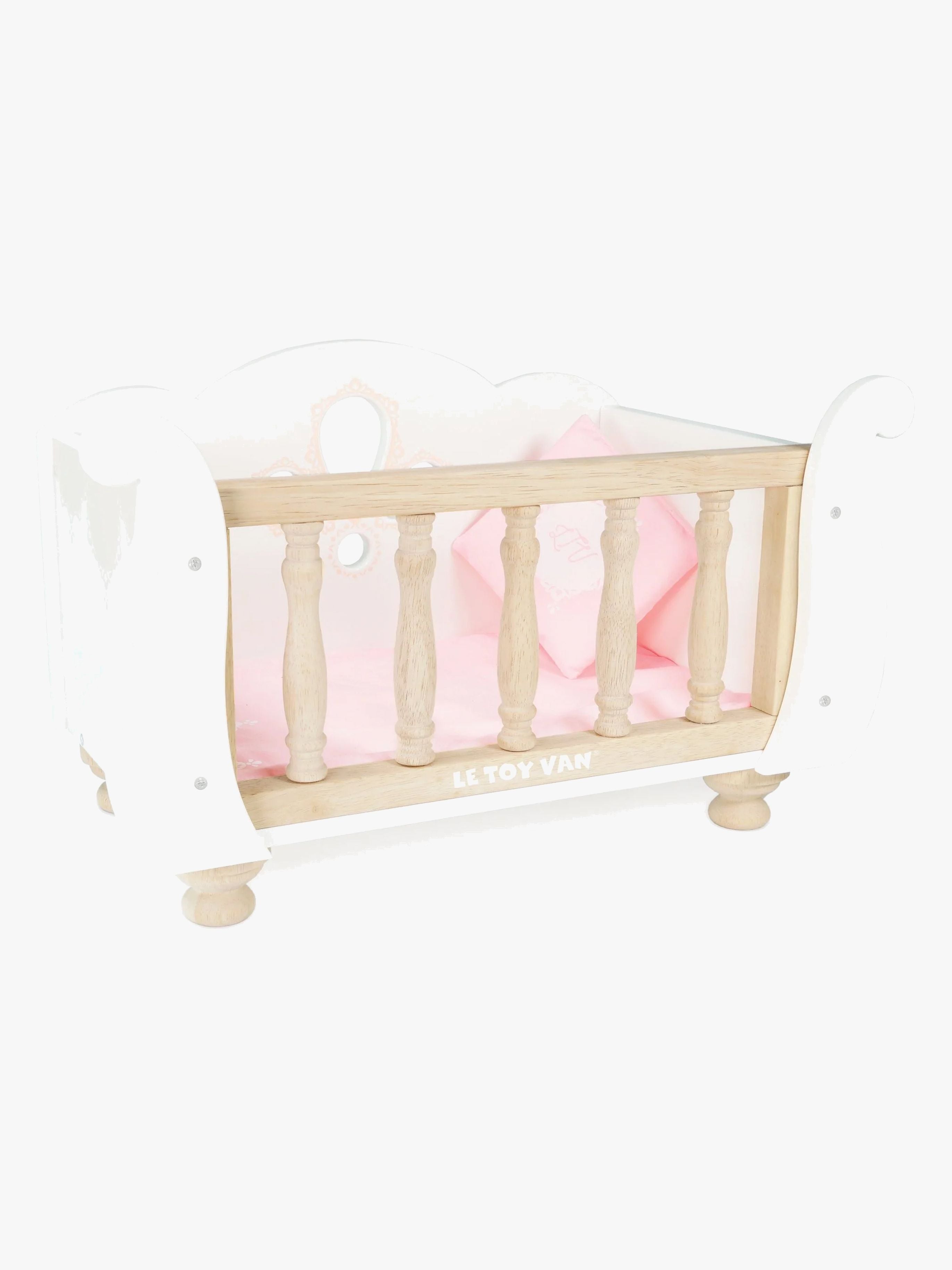Sød dukkeseng fra Le Toy Van med et hyggeligt sengesæt. Perfekt til sjov leg. - Indeholder: 1 seng, 1 pude, 1 tæppe, 1 madras. - Aftagelig front. - Perfekt til dukker, der er 30 cm høje. - Perfekt til sjov rolleleg. - Slidstærkt materiale. - Sødt design. - CE-mærket. - Anbefalet alder: Fra 3 år. - Gummitræ, bomuld.