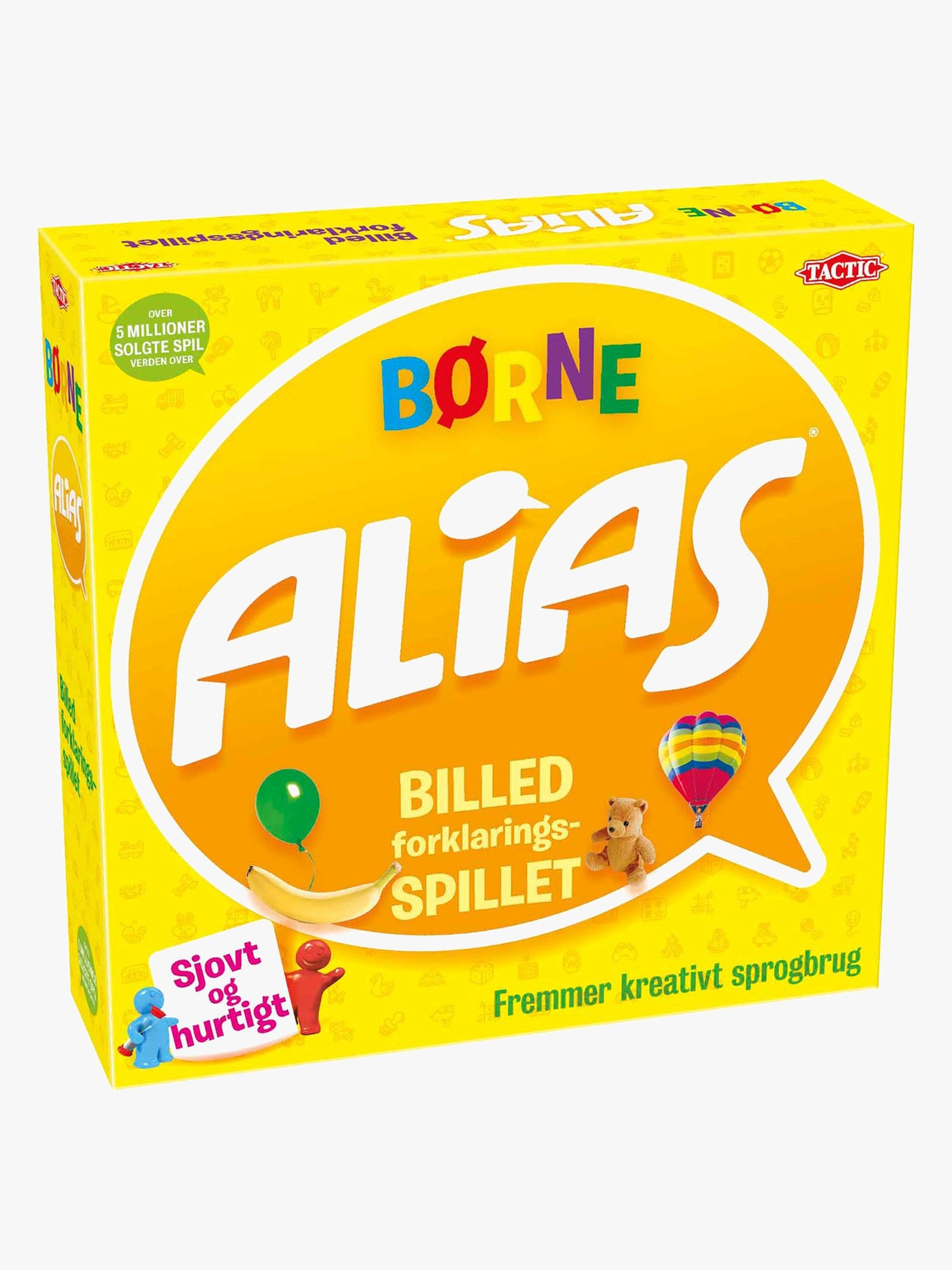 Børne Alias fra Tactic er et sjovt spil, der lærer børn at udvide deres ordforråd på en genial måde. Billedkortene er nemme at forklare ord fra, men timeglasset stopper aldrig. Anbefalet alder: Fra 5 år.