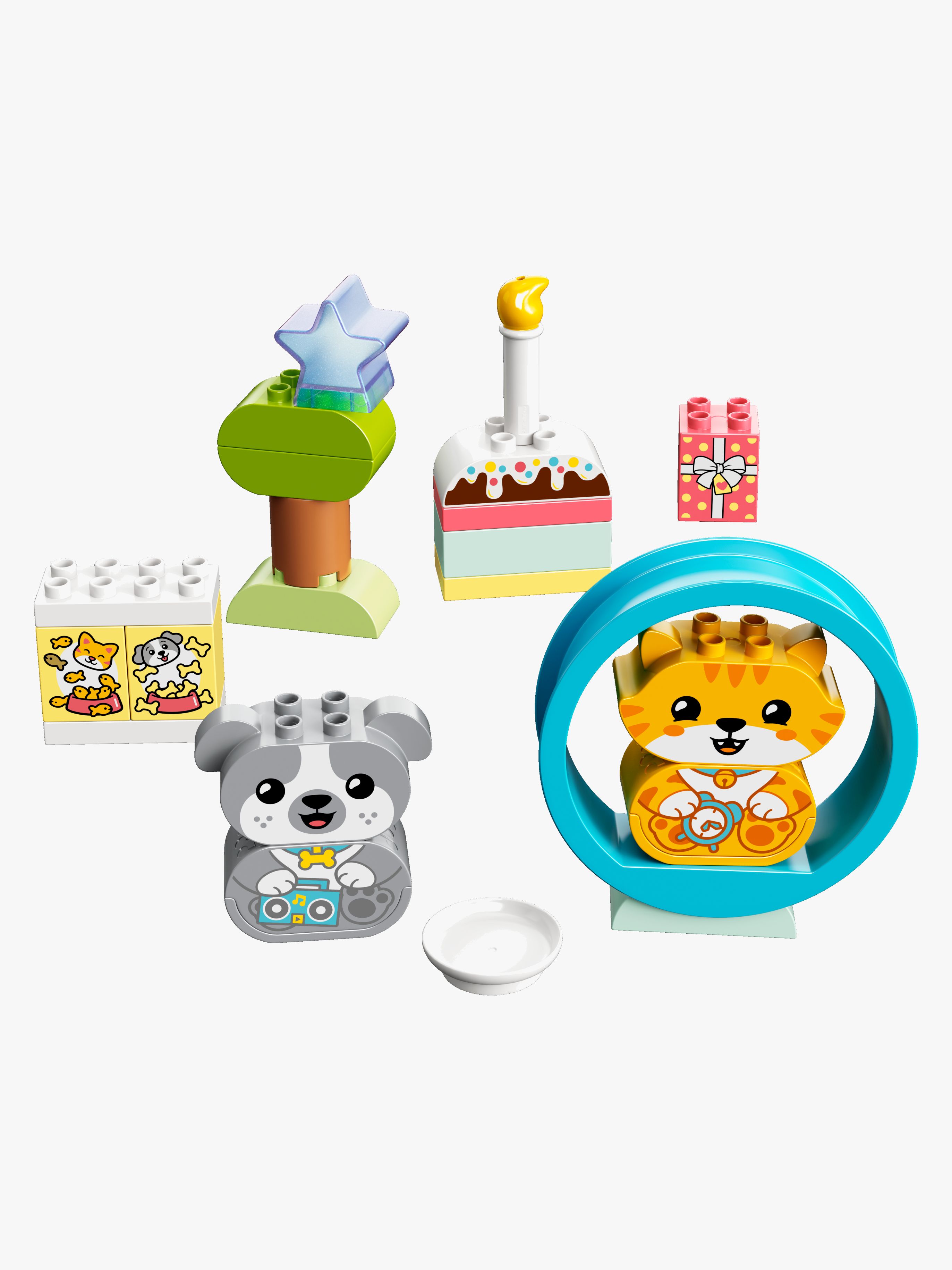 Børn fra 1œ år kan få masser af sjov, mens de lærer og opbygger færdigheder med LEGO® DUPLO® sættet Min første hvalp og killing med lyde (10977). Lyt og lær med søde dyr Dette bedårende legesæt med dyretema indeholder en sød killing og en hund, hver især lavet af 2 småbørnsvenlige elementer. Din lille dyrefan vil elske at sætte kæledyrene i rulleringen. Lydfunktionen, der medfølger for hvert dyr, styrker mulighederne for leg og læring endnu mere med lyde, der angiver, hvornår det er tid til at spise, lege, sove osv. en fantastisk måde at lære små børn om daglige rutiner på. Legende læring for små børn Forældre kan være med til at dele vigtige udviklingsmæssige milepæle, når LEGO DUPLO legetøj giver små børn ubegrænset sjov, selvudfoldelse og glad udforskning mellem hænderne. - Udviklende sjov med en småbørnsvenlig killing og hvalp - Indeholder 2 kæledyr med indbyggede spise-, lege- og sovelyde - Små børn lærer om dyrepleje og daglige rutiner, mens de leger - Gaveidé til drenge og piger fra 1œ år, der elsker kæledyr - Hvert kæledyr er over 9 cm højt - LEGO® DUPLO® sæt er designet til at inspirere til endeløs og udviklende leg - LEGO® DUPLO® komponenter lever op til strenge branchestandarder for kvalitet - LEGO® DUPLO® klodser opfylder krævende standarder for børns sikkerhed