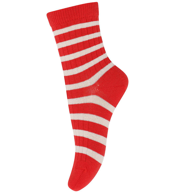MP Strømper - Rib - Eli - Tomato m. Striber