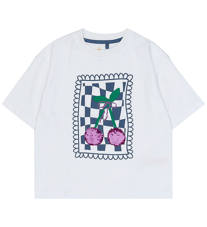 The New T-shirt - TnSimone - Bright White m. Print/Pailletter