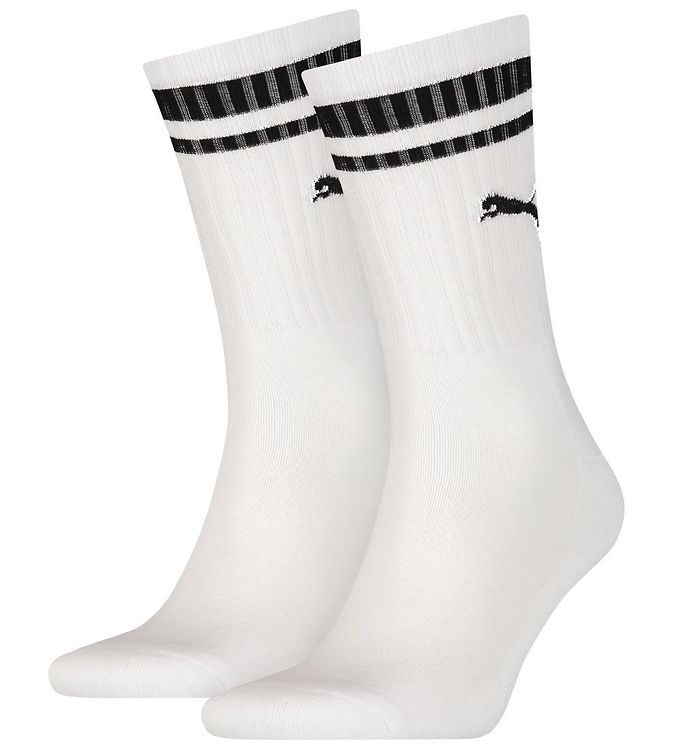 Puma Strømper - Regular Crew - 2-pak - Hvid m. Sorte Striber
