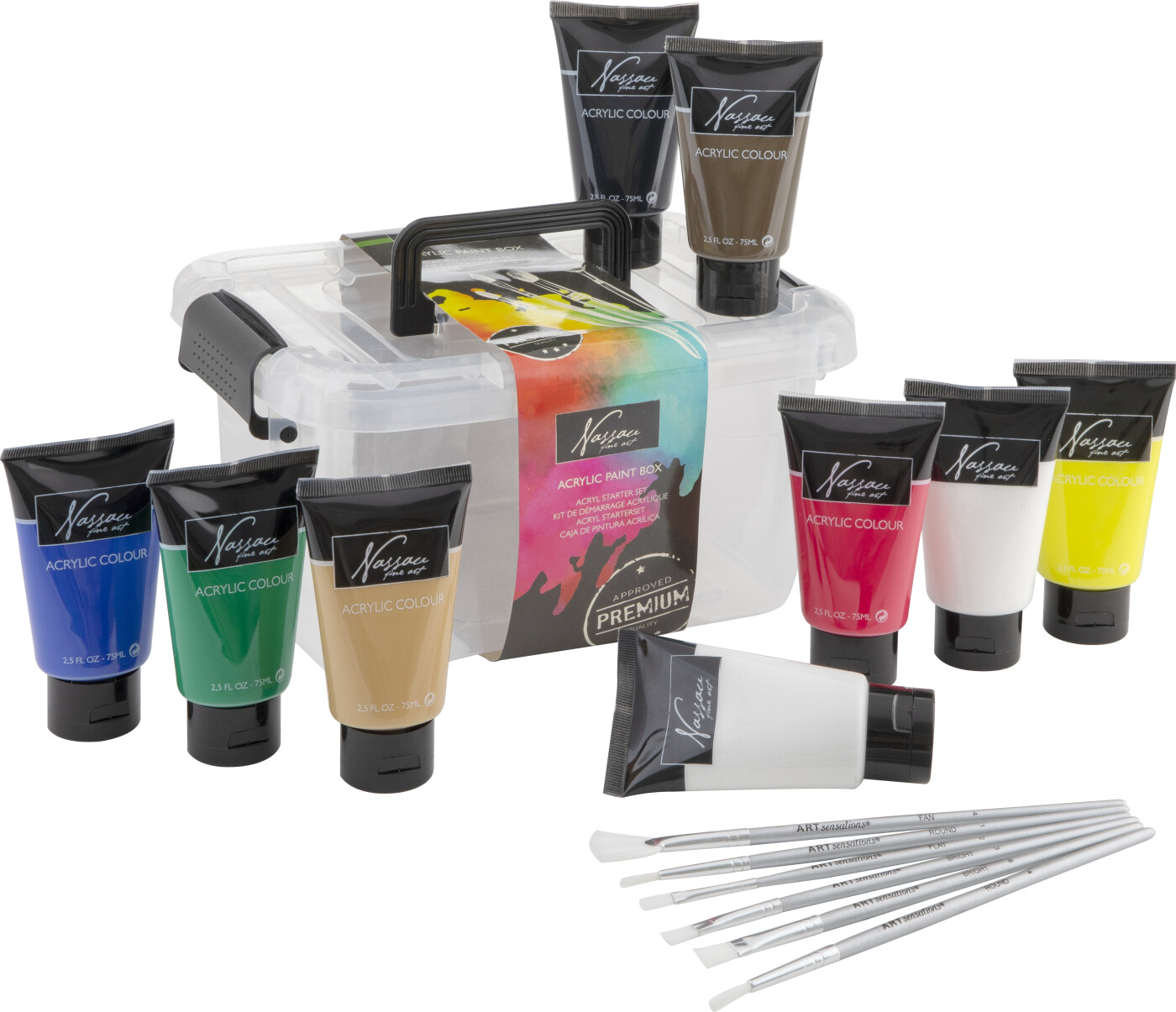 Nassau Fine Art - Akrylmaling Sæt Med Pensler - 9x75 Ml