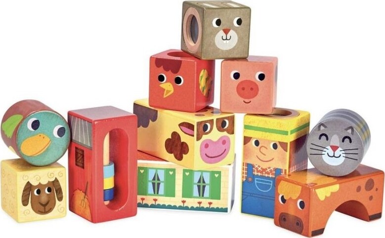 Vilac Træklodser / Byggeklodser Med Lyd - Bondegårds Dyr