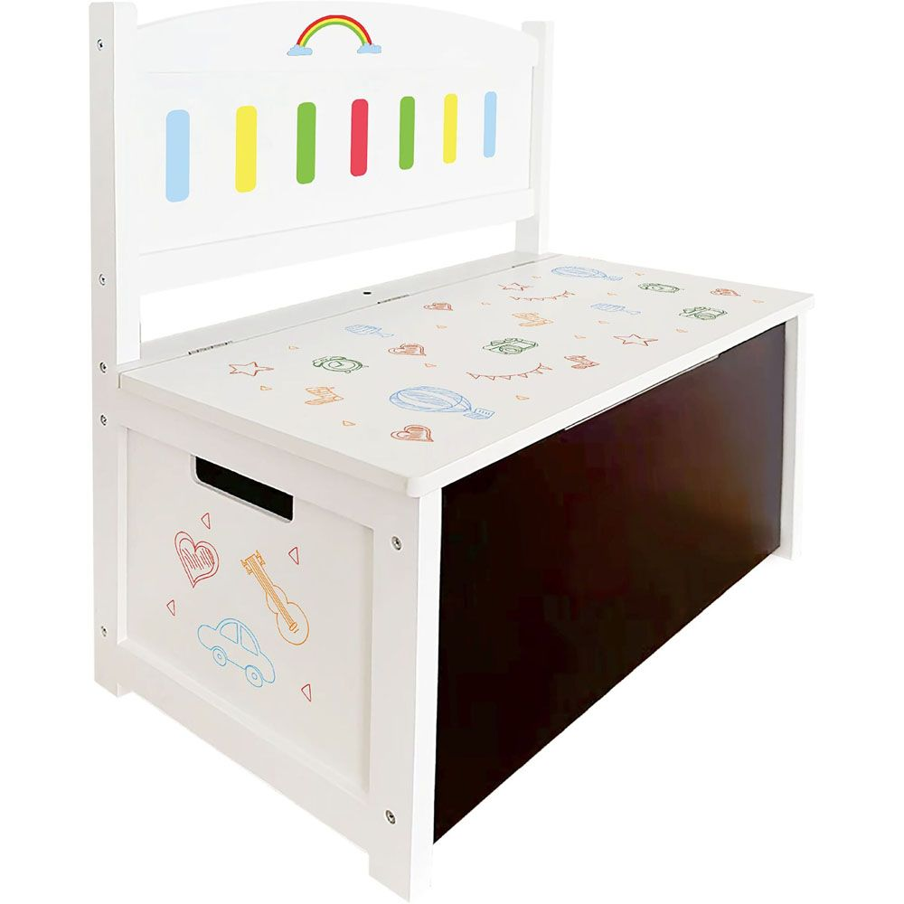 3 i 1 Bænk, med en integreret kridttavle og praktisk opbevaringsplads under sædet. Inkluderer 2 stykker kridt og en svamp. Maksimal belastning ca. 50 kg. Mål indvendigt ca. 54x26,5x22 cm. Mål opstillet ca. 60x31,6x55,6 cm. Til børn fra 3 år.