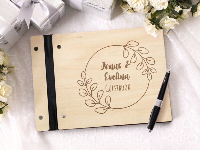 En gæstebog i træ med egen tekst bliver et smukt og mindeværdigt indslag til enhver sammenkomst. Det naturlige træg materiale og den personlige gravering gør bogen både unik og tidløs - perfekt til at samle hilsner, minder og varme ord fra gæsterne.