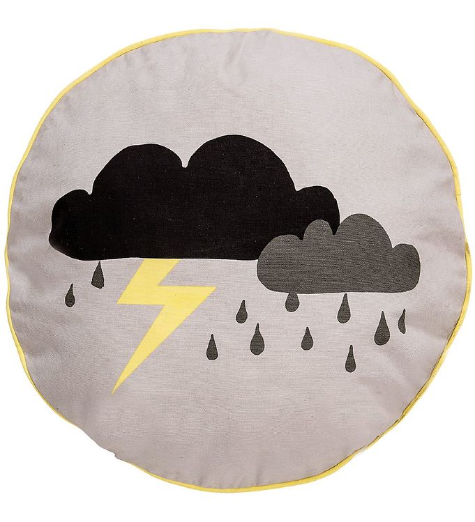 Bloomingville Pude - Ø50 cm - Grå/Gul m. Skyer