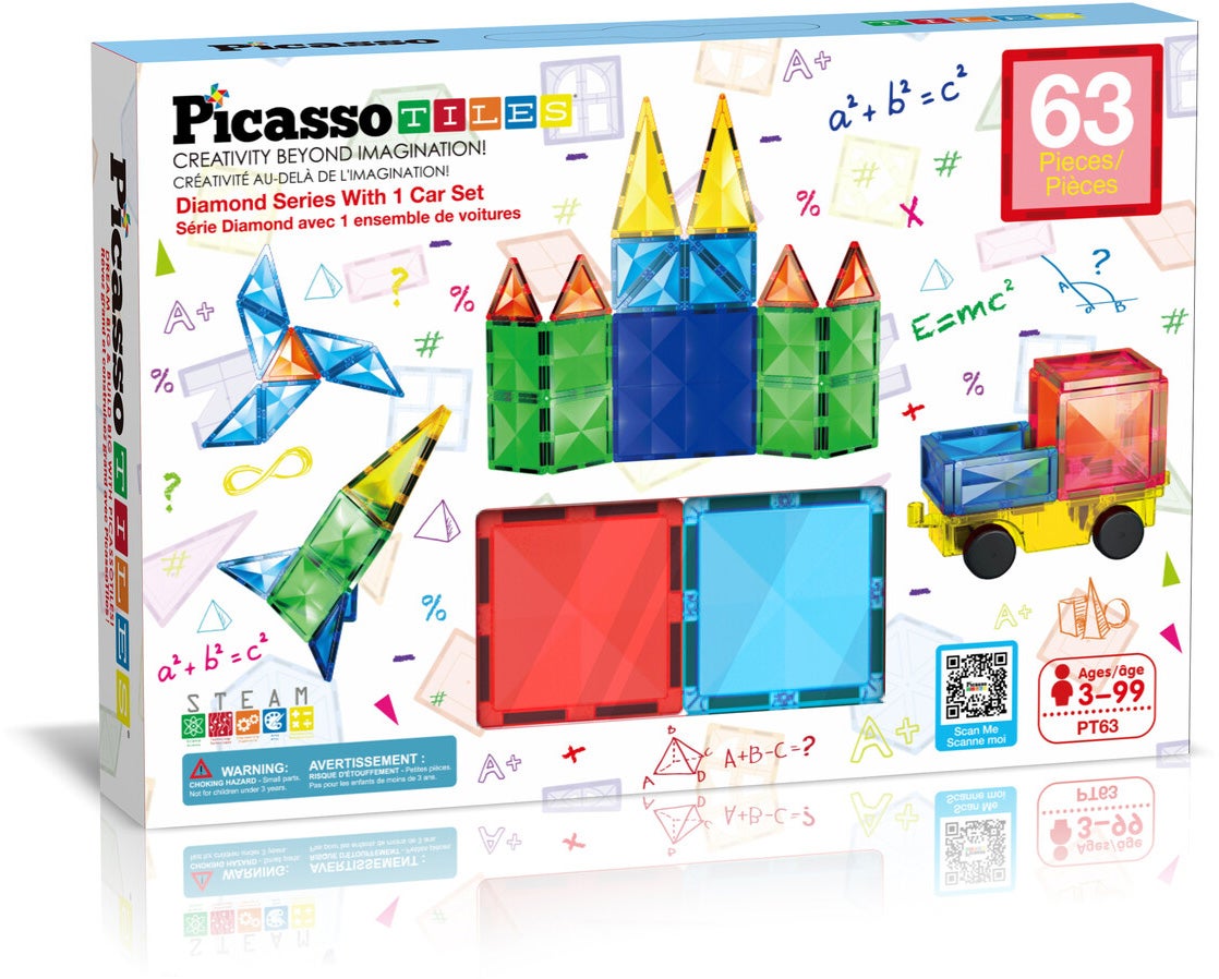 PicassoTiles Diamond Series Magnetisk Byggesæt med Bil 63 Dele