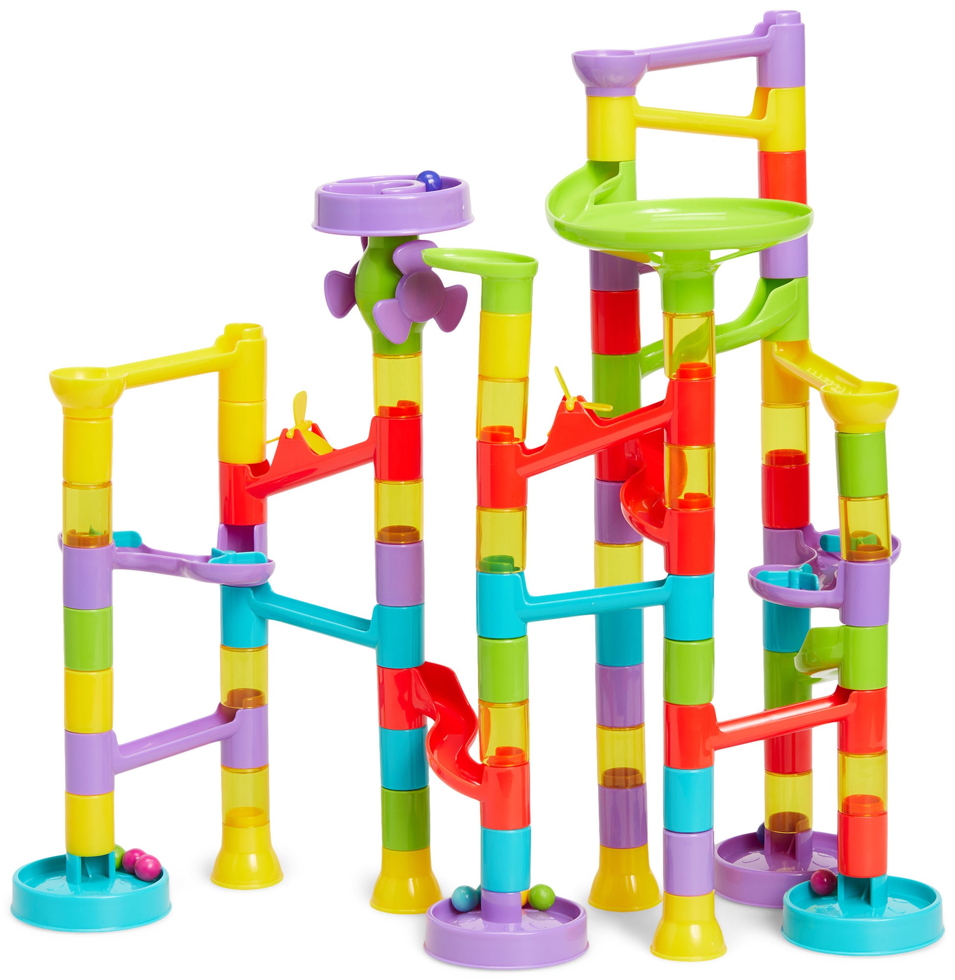 En sej kuglebane fra Redbox. Kuglebanen har en stor spiral og forskellige underlag og forhindringer. Efterlign originalen eller byg din helt egen konstruktion. Delene er lette at sætte sammen og fremstillet af slidstærkt materiale. Dette sæt vil udvikle kreativiteten og den logiske tænkning. Det er aldrig kedeligt med en kuglebane! 10 kugler medfølger. Anbefalet alder: Fra 3 år.