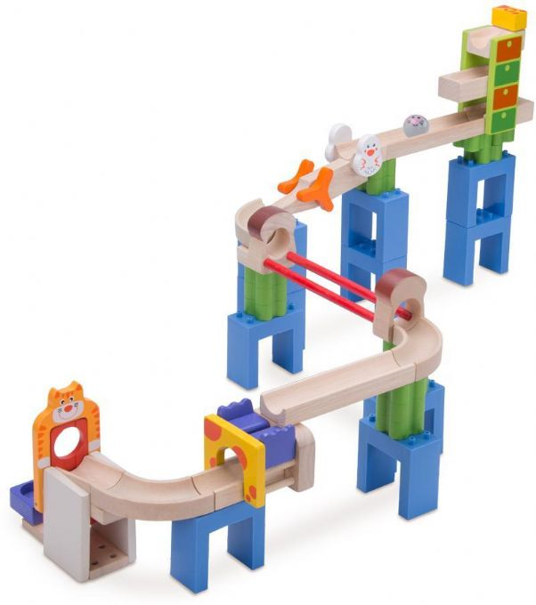 Mon katten fanger musen? Det er spændende og pirrer dit barns nysgerrighed.Sjov kuglebane der kan bruges alene eller bygges sammen med de øvrige Trix Tracks kuglebaner.
