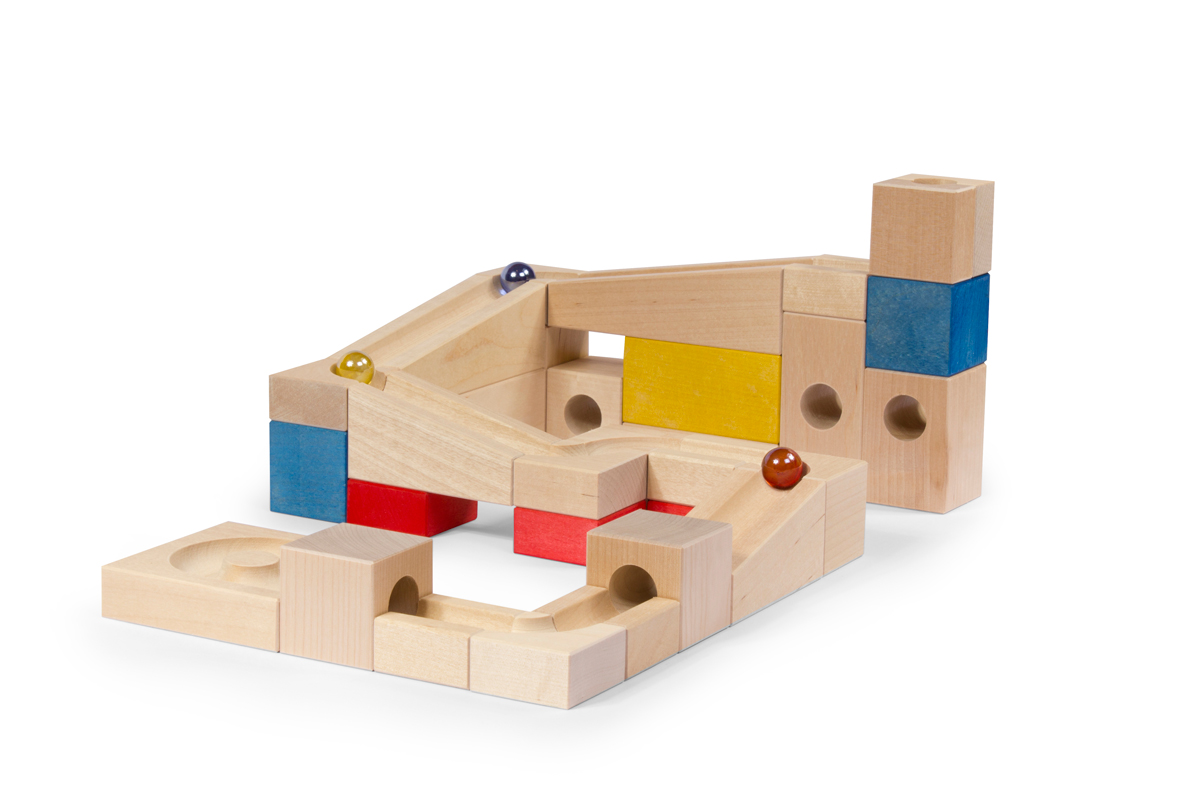 VARIS Marmor Kuglebane er et konstruktion Tręlegetųj, der fremmer tredimensionel tęnkning og hjęlper bųrn med at bruge deres fantasi til at bygge konstruktioner på en måde, hvor marmorkuglerne altid vil nå bunden. Trędelene er udformet således, at marmork