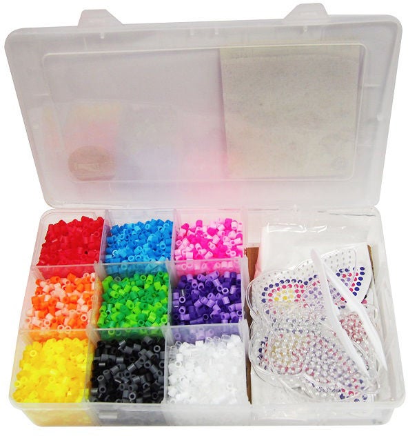 Stort perlesæt fra Suntoy med alt du behøver for at skabe flotte mønstre og figurer. Æsken indeholder mere end 700 dele og der er 5 forskellige plader med tilhørende farveforslag, pincet og strygepapir. Anbefalet alder: Fra 7 år.
