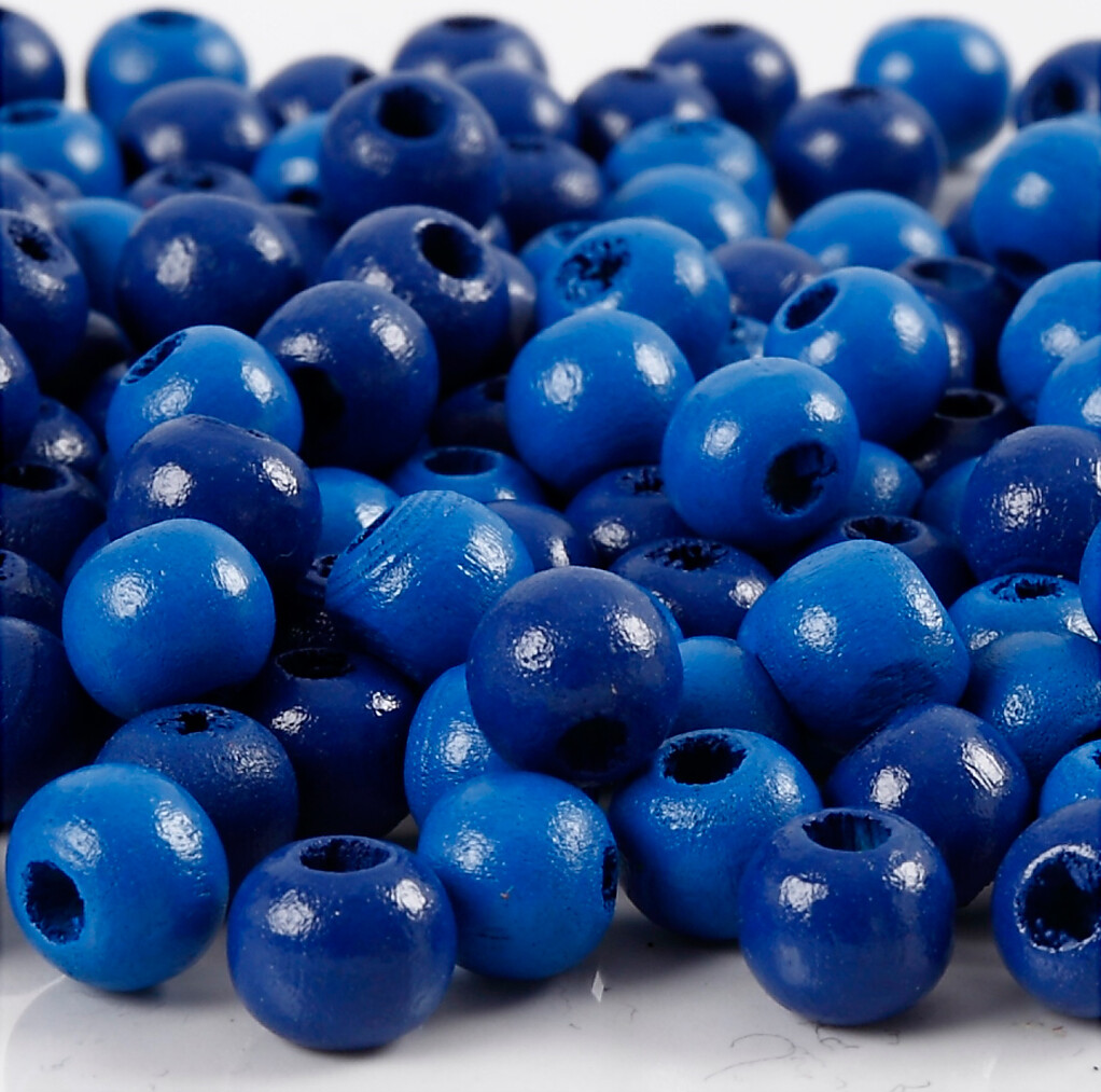 Træperler - ø 8 Mm - Hulstr. 2 Mm - Blå - 15 G - 80 Stk.