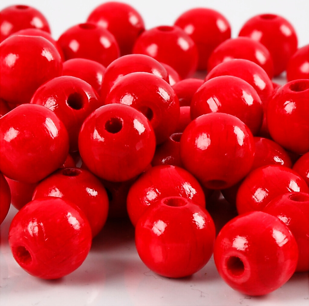 Træperler - ø 10 Mm - Hulstr. 3 Mm - Rød - 20 G