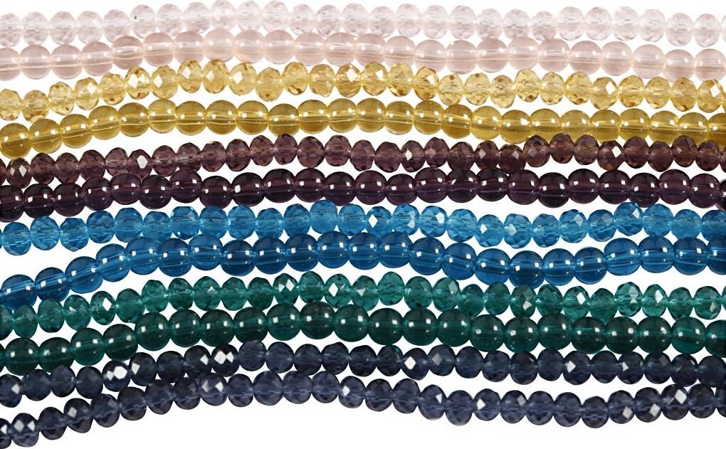 Få et sortiment af fine, transparente, gennemfarvede glas- og facetperler til kreative...
