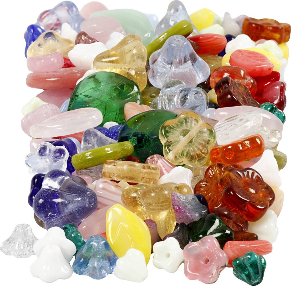 Glasperler - Blade - Blomster - ø 6-17 Mm - Hulstr. 0,5-1,5 Mm - Assorterede Farver - 350 G