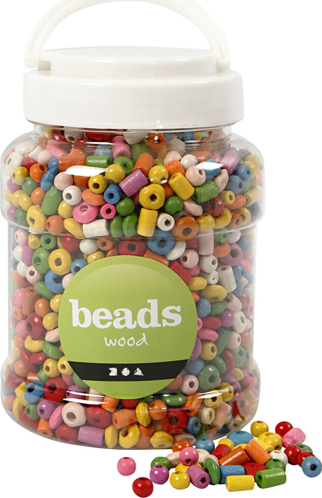 Træperler - ø 5-8 Mm - Hulstr. 1,5 Mm - Forskellige Farver - 400 Ml - 175 G