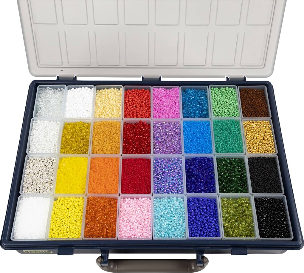 Rocaiperler - Glasperler - ø 1,7+3+4 Mm Hul 0,5-1,2 Mm - Farve Kan Variere - 32x100 G