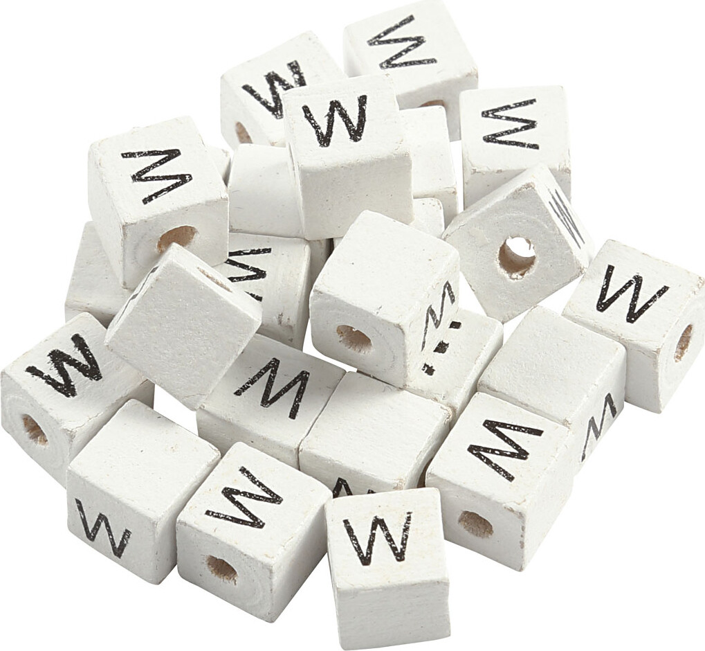 Bogstav Perler - Trę - W - 8x8 Mm - Hulstr. 3 Mm - Hvid - 25 Stk.