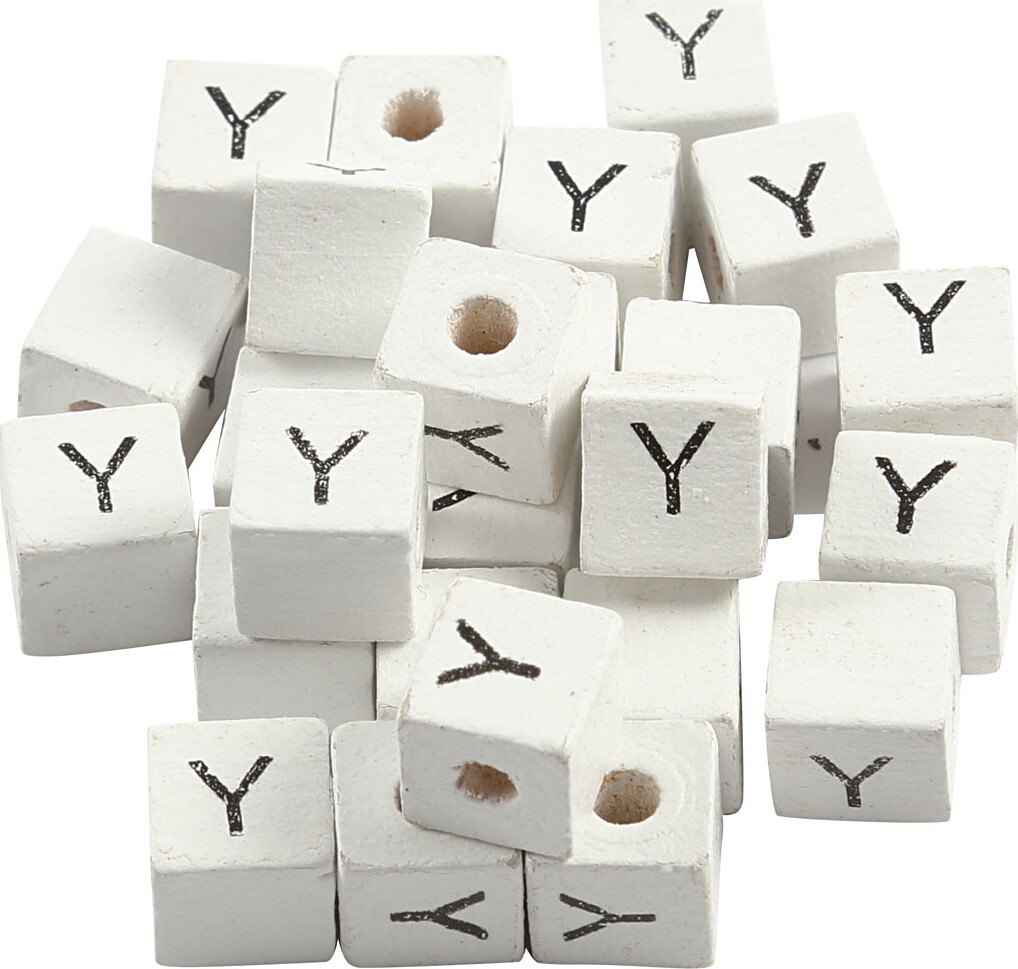 Bogstav Perler - Trę - Y - 8x8 Mm - Hulstr. 3 Mm - Hvid - 25 Stk.