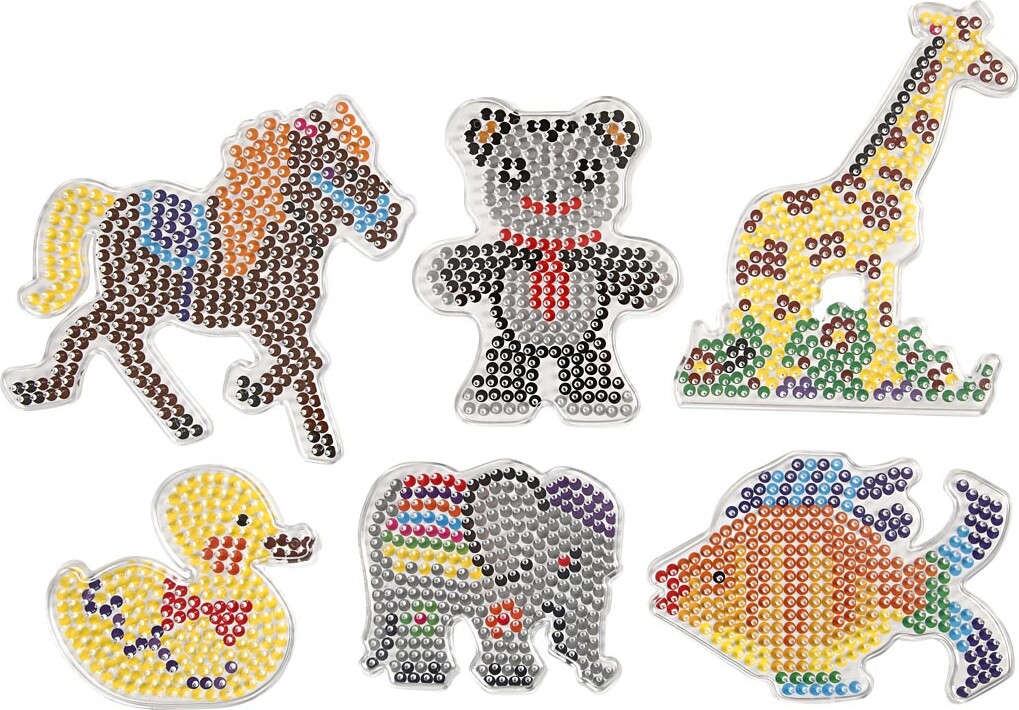 Perleplade Dyr Sæt - And Elefant Giraf Bjørn Hest Og Fisk - Medium - 6 Stk.