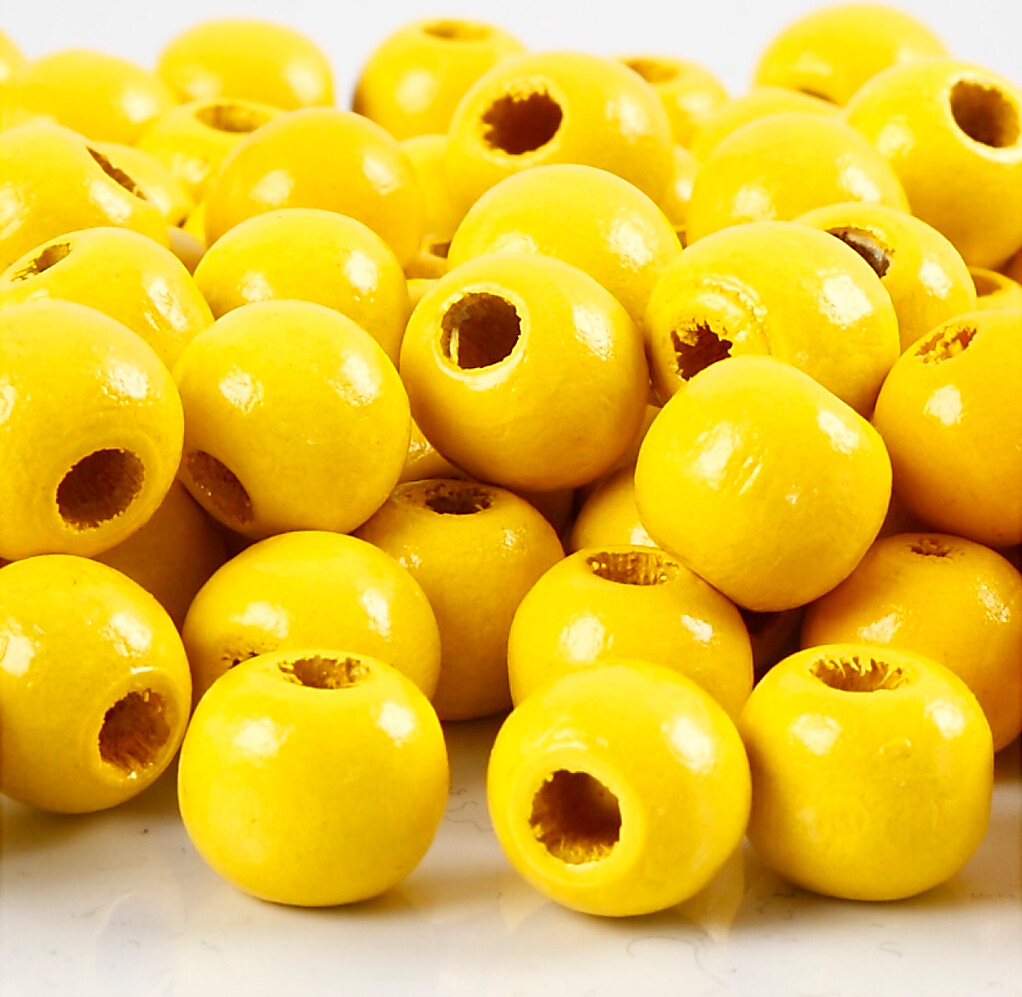 Træperler - ø 12 Mm - Hulstr. 3 Mm - Gul - 22 G