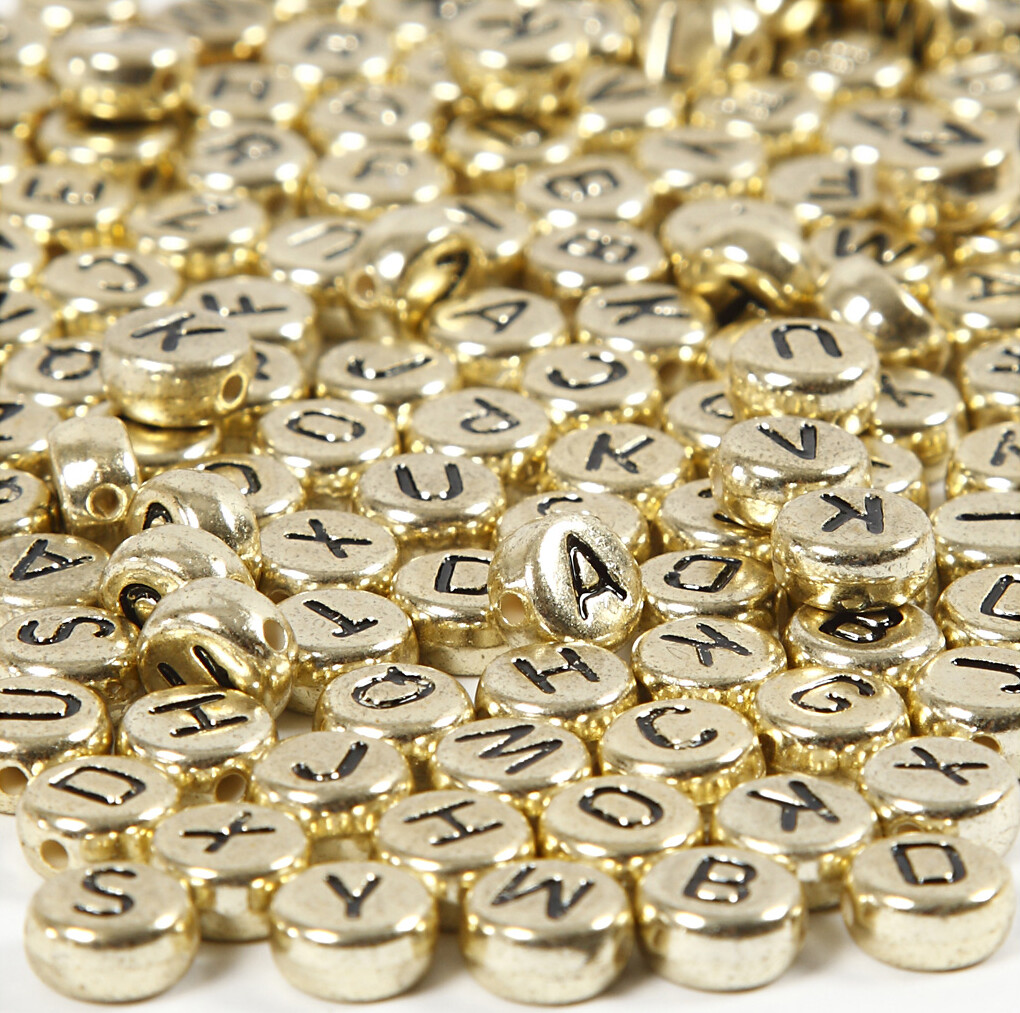 Bogstav Perler - ø 7 Mm - Hulstr. 1,2 Mm - Guld - 21 G