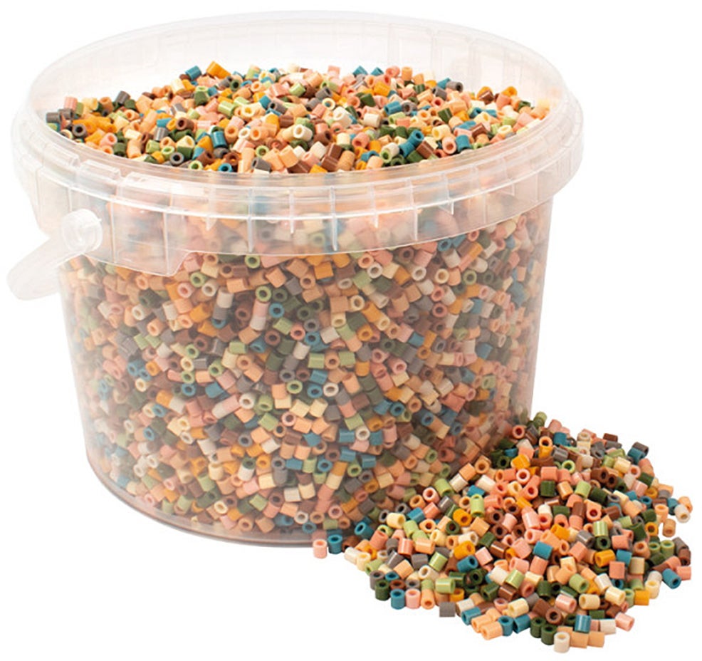 Perler fra Playbox i en bøtte. Perfekte til mange timers kreativ leg og kunsthåndværk. - Blandede farver. - Kun fantasien sætter grænserne. - 20000 stk. - CE-mærket. - Anbefalet alder: Fra 5 år.