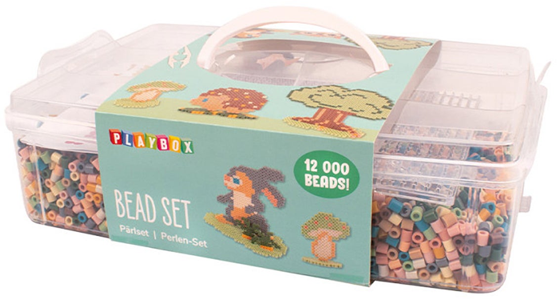 Sjov hobbytaske fra Playbox med 12000 rørperler i forskellige farver. Den har en medfølgende perleplade til at skabe sjove og kreative kunstværker med og en praktisk opbevaringstaske. Perfekt til kreative stunder. - Indeholder: 12000 perler, 1 perleplade, 1 pincet, 1 mønsterkort, 1 strygepapir. - Miks og match de farverige perler for at lave unikke designs. - Let at tage med sig. - Udviklende og sjovt legetøj. - 12000 stk. - CE-mærket. - Anbefalet alder: Fra 5 år. - Plastik.