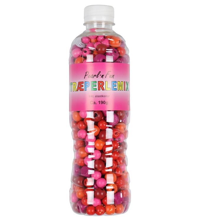 Pearl'n Fun Træperler m. Elastiksnor - 190 gram - Rød/Pink/Orang