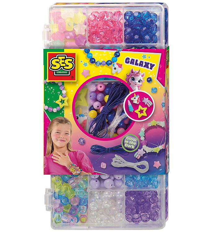 Med SES Creative Smykkesæt - Galaxy Perler kan børn udfolde deres kreative evner og skabe unikke smykker, der skiller sig ud. Dette sæt indeholder et farverigt udvalg af perler i forskellige former og størrelser, der inspirerer til timevis af sjov og fantasi. Hver perle er designet til at ligne stjerner og galakser, hvilket gør det muligt at lave smykker, der glimter og funkler som nattehimlen. Smykkesættet er let at bruge og perfekt til både nybegyndere og erfarne små kunstnere. Børn kan lave armbånd, halskæder og meget mere ved hjælp af den medfølgende elastik, der gør det nemt at samle deres kreationer. Det er ikke kun en sjov aktivitet, men også en fantastisk måde at udvikle finmotorik og kreativ tænkning på. Uanset om det er til en fødselsdagsfest, en legedag med venner eller bare en hyggelig eftermiddag derhjemme, vil dette smykkesæt begejstre alle kreative sjæle. Giv dit barn muligheden for at skabe deres egne smykkedesign med SES Creative Smykkesæt - Galaxy Perler og se deres fantasi komme til liv.