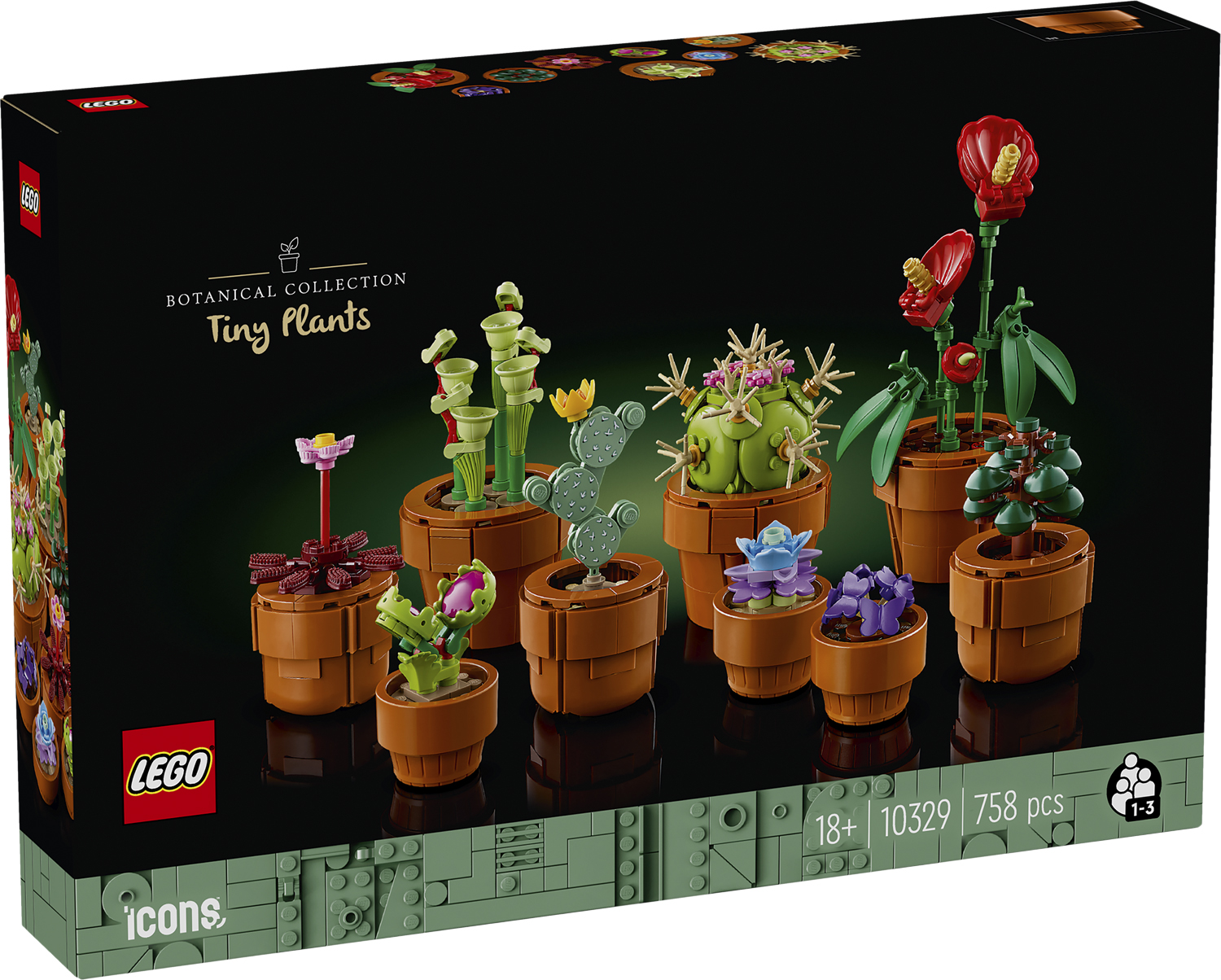 Skab en elegant og vedligeholdelsesfri blomsterudstilling med dette boligindretnings- og byggesæt til voksne. LEGO® Icons byggeprojektet Små planter (10329) indeholder arter, der gror på tørre steder, samt tropiske og kødædende arter, hver i sin egen terr