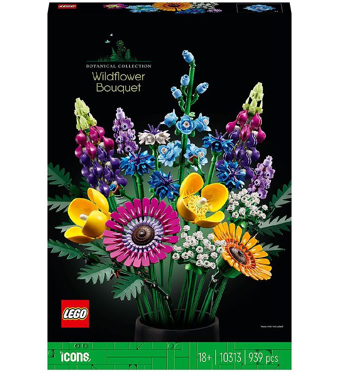 Forvandl dit rum med LEGO® Icons - Buket af Vilde Blomster 10313. Dette unikke sæt indeholder hele 939 dele, der lader dig bygge en fantastisk buket af vilde blomster. Med en kombination af farverige blomster og detaljeret foliage, kan du skabe din egen kunstneriske komposition, der tilføjer liv til ethvert rum.