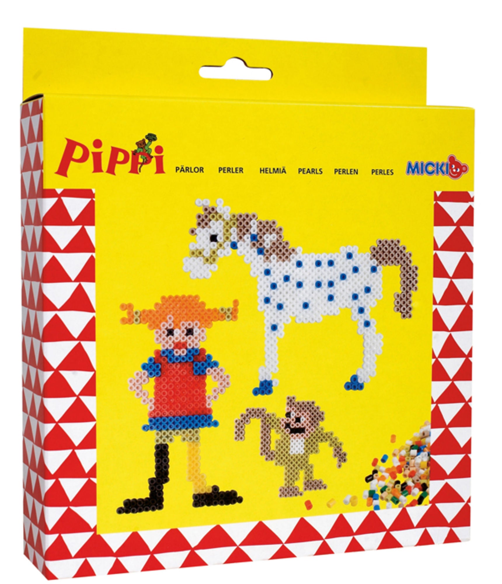Perlesæt Pippi Langstrømpe fra Micki en pakke med hele 2000 perler. Pakken indeholder også to perleplader og diverse mønsterkort. Nu kan dit barn skabe fine billeder af Pippi Langstrømpe, Hr. Nilsson og Pippis hest, Lille Gubben eller finde på sine helt egne møsntre. - 2000 perler. - 2 perleplader. - Mønsterkort. Anbefalet alder: Fra 3 år. Materiale: Plastik.