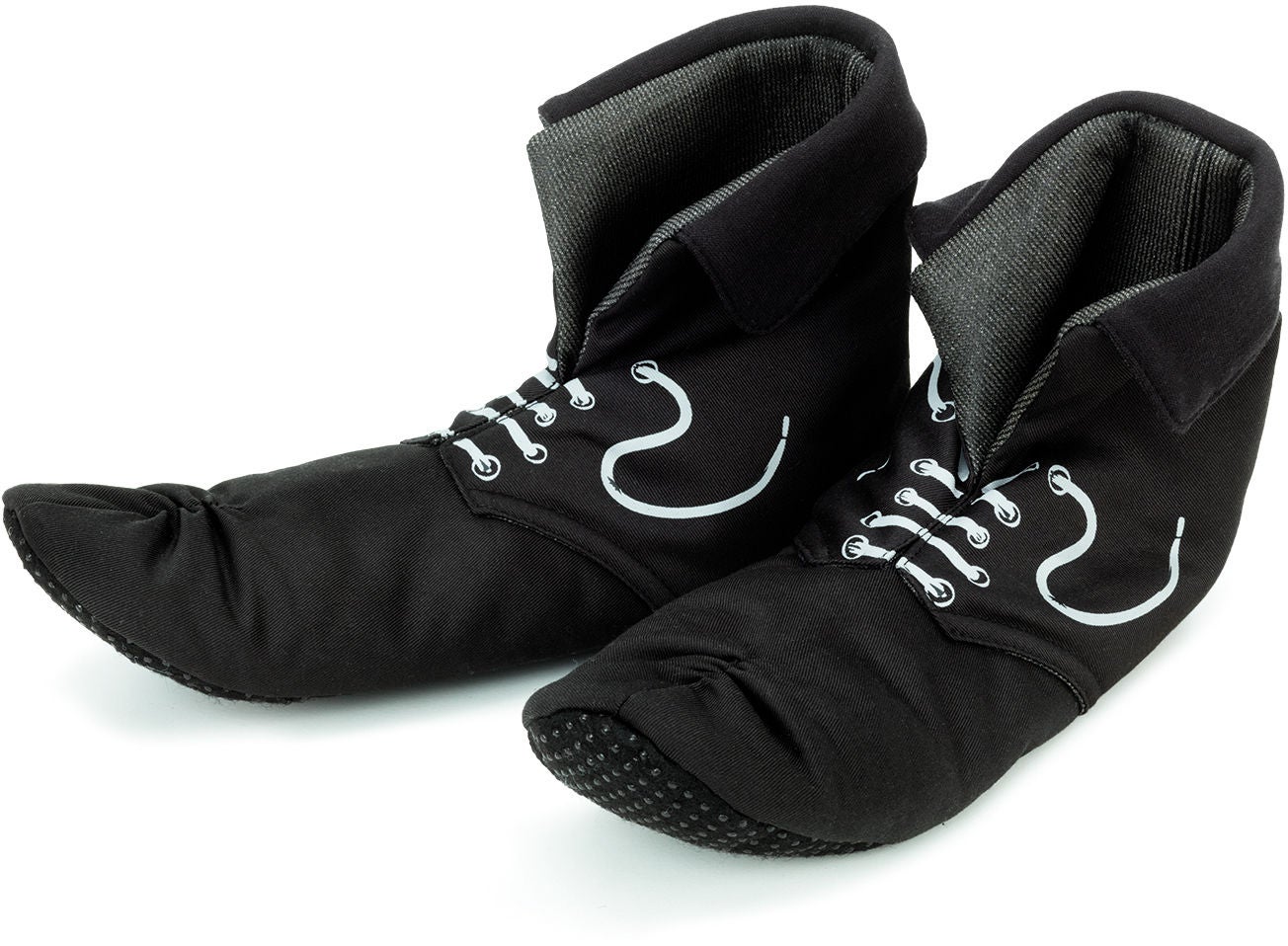 Pippi Langstrømpes sjove støvler, i en blød legeversion, til dig som vil klæde dig ud som verdens stærkeste pige. Der er masser af plads i støvlerne til at vifte med tæerne og de har påtrykte snører. Støvlerne har skridsikere bunde, så du kan hoppe sikkert rundt i dem, hele dagen lang! - One size
