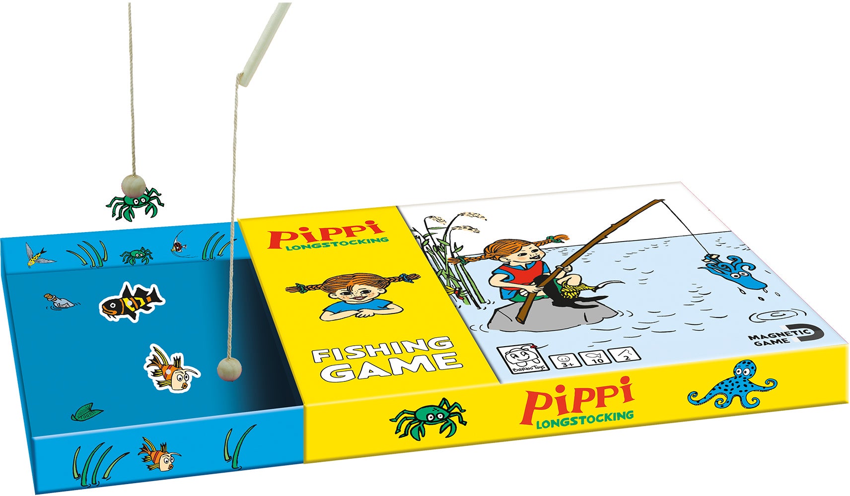 Fiskespil fra Barbo Toys med et inspirerende tema fra Pippi Langstrømpe. Perfekt til udvikling af øje-hånd-koordination og tålmodighed. - Indeholder: 10 dyr, 2 fiskestænger. - Pippi Langstrømpe-tema. - Magnetisk. - Perfekt til mange sjove spiløjeblikke. - CE-mærket. - Anbefalet alder: Fra 3 år. - Træ.