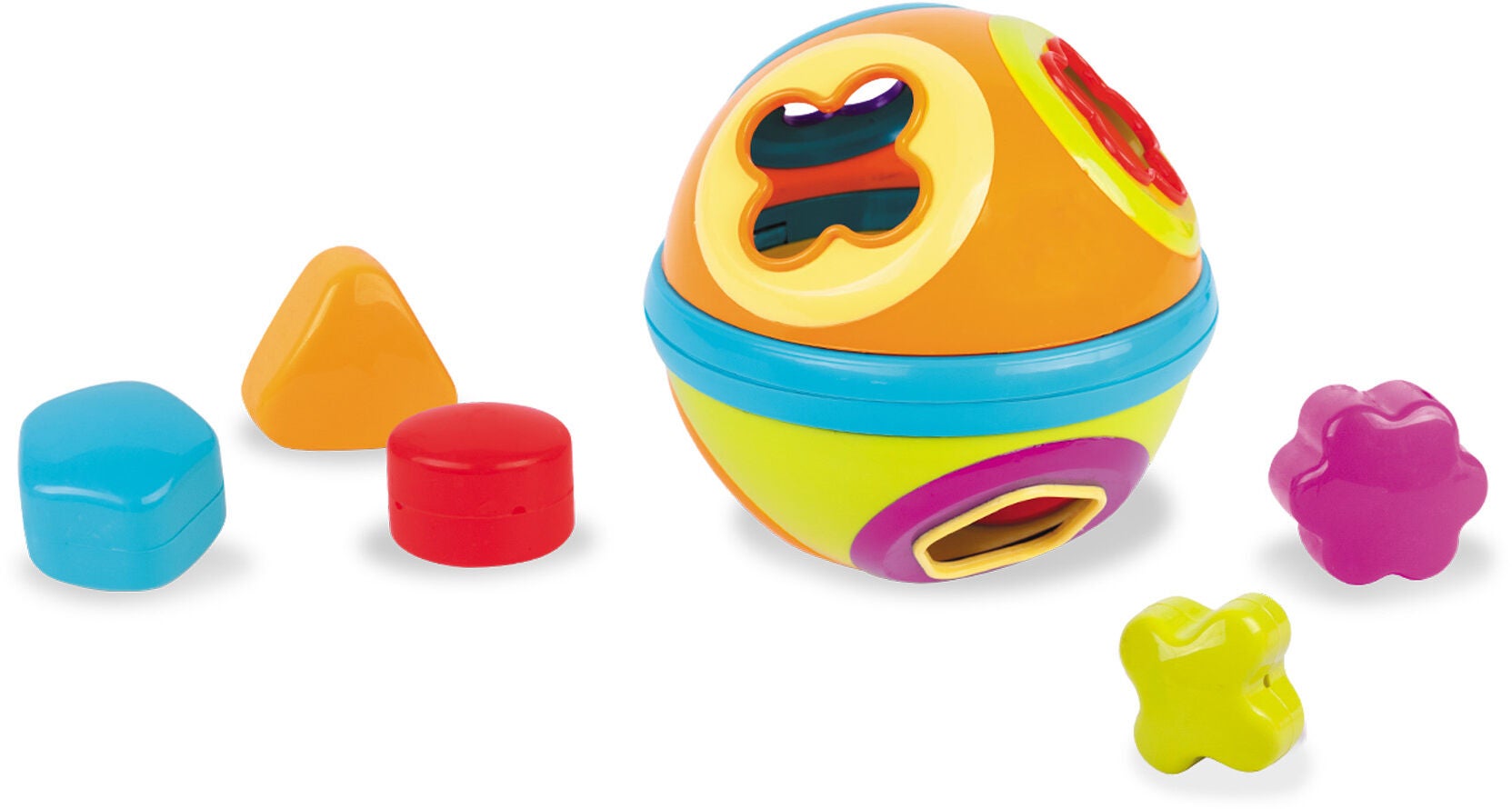 Sorteringsbolden er fremstillet af sikre, holdbare materialer, der sikrer timevis af underholdning. Den indeholder farverige former, der kan sorteres og puttes ind i bolden, hvilket hjælper dit barn med at lære om former, farver og årsag-virkning. Med sin kompakte størrelse er den også perfekt til at tage med på farten.
